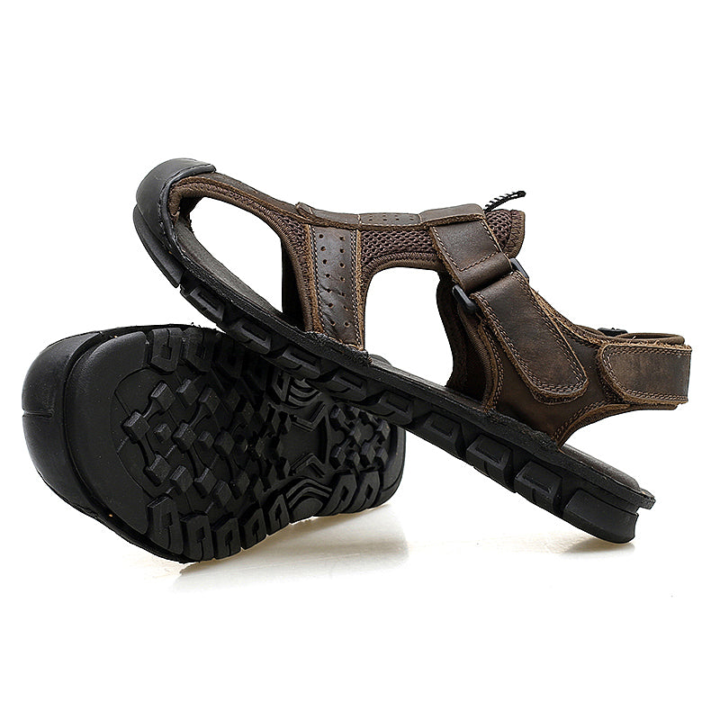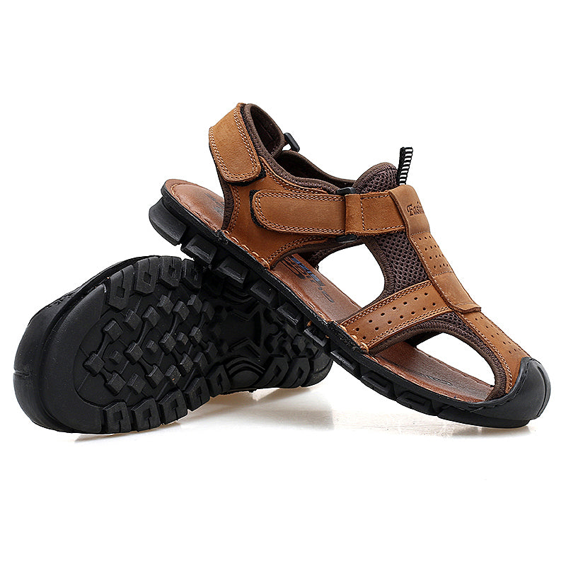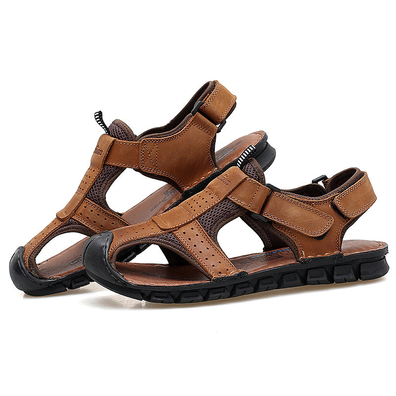 Men's Casual Sandal Leather Cowskin Genuine Loafers Beach Breathable Outdoor Shoes KHAKI BROWN