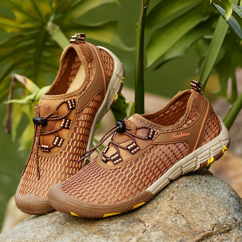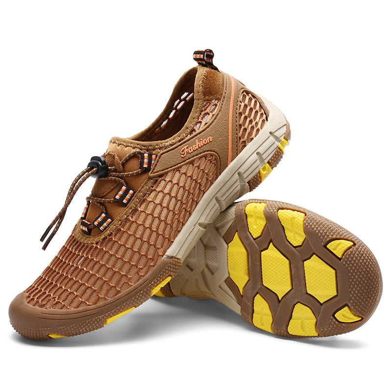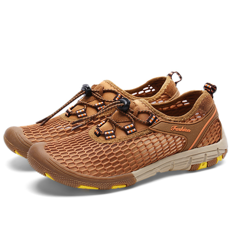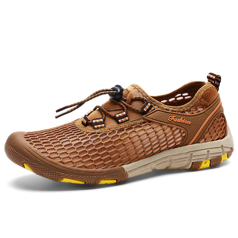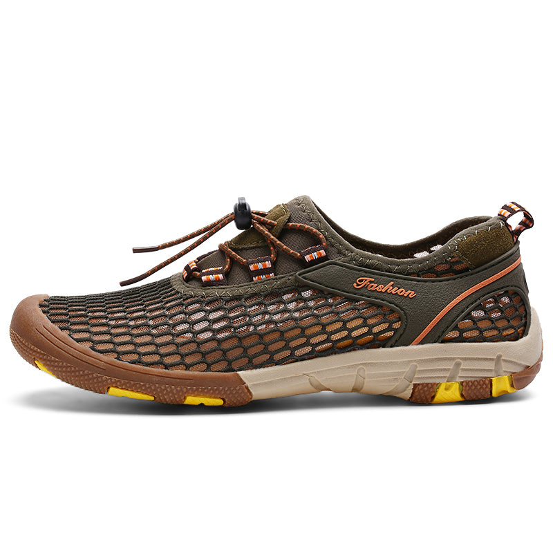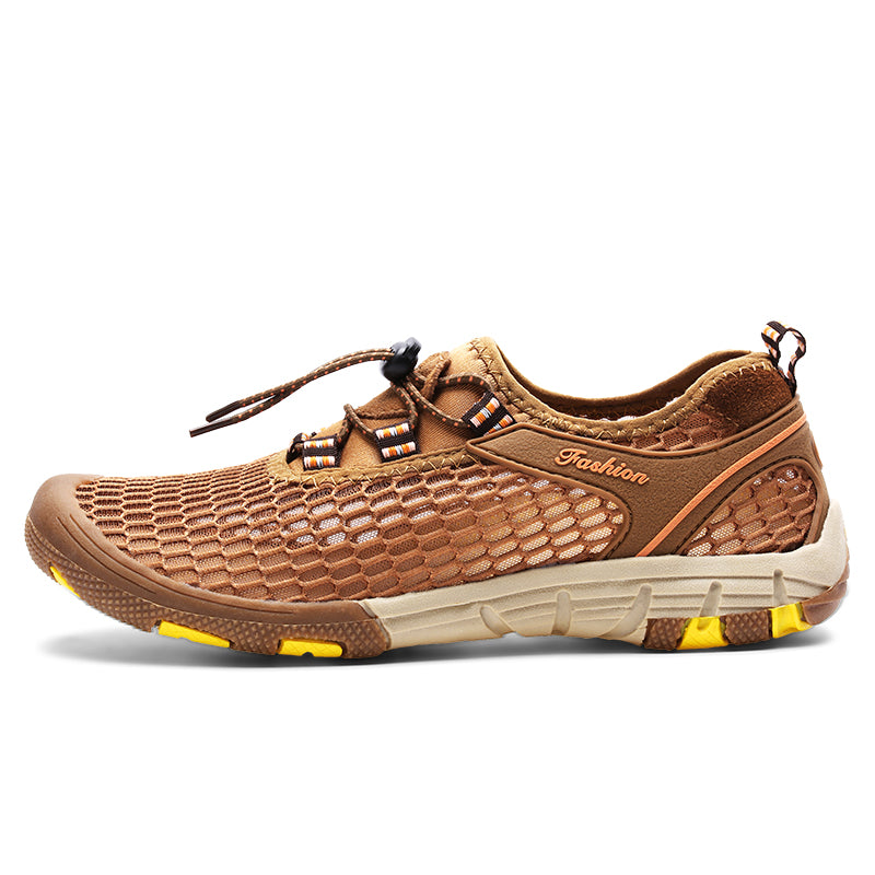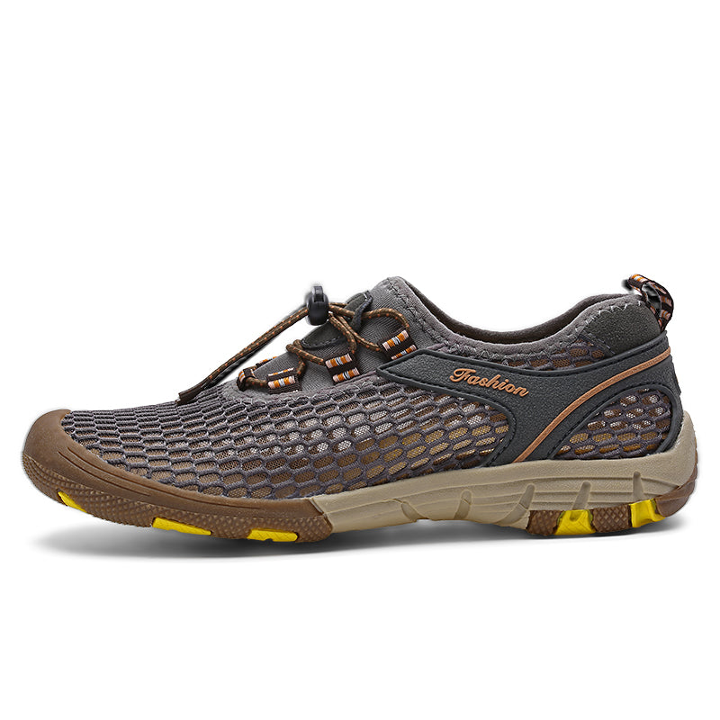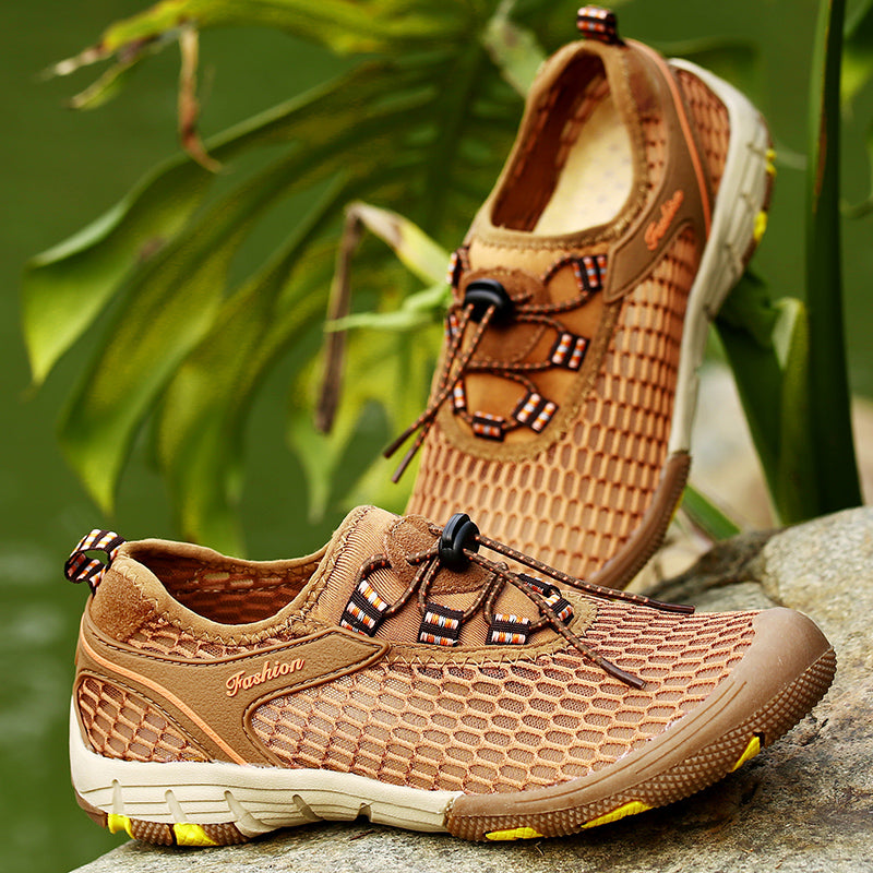 Men's Casual Sandal Leather Cowskin Genuine Loafers Beach Mesh Breathable Outdoor Shoes GRAY BROWN KHAKI