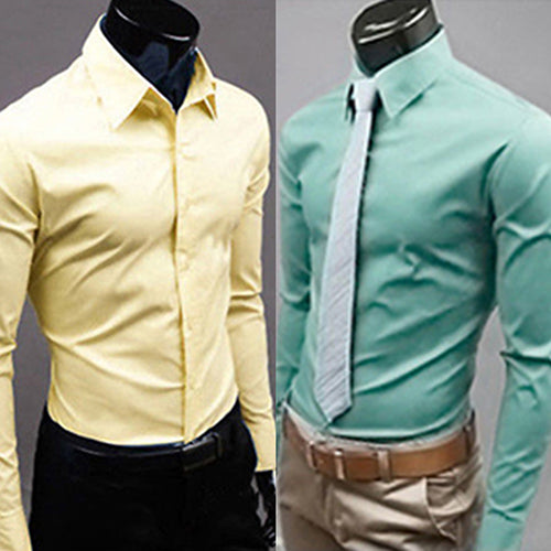Men's Fashion Casual Solid Candy Color Long Sleeve Slim Fit Dress Shirt Top
