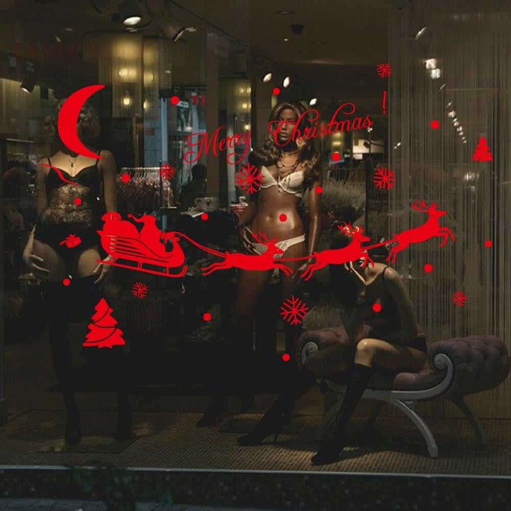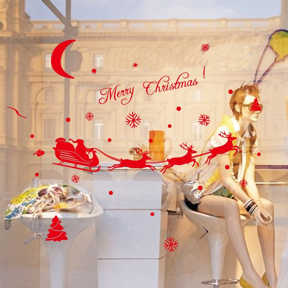 Merry Christmas Sled Snowflake Wall Sticker Home Showcase Window Decal Decor