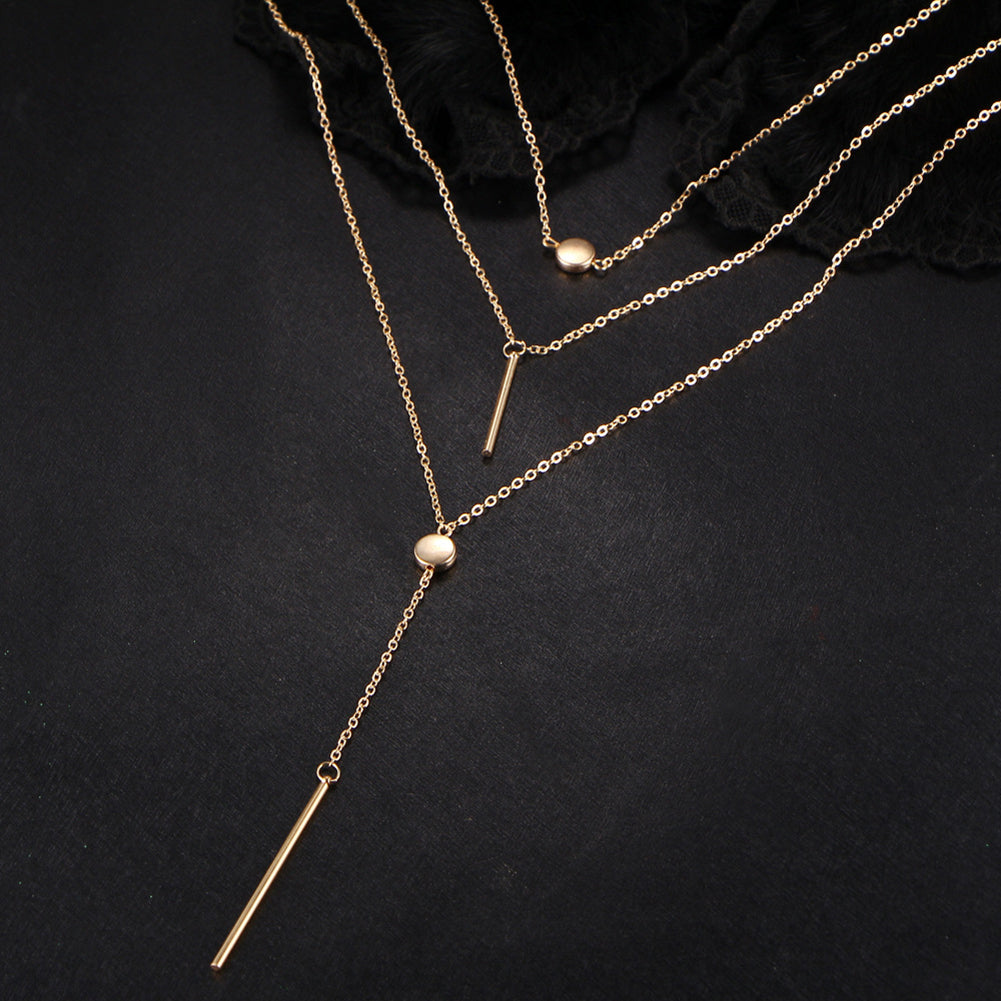 Multi Layers Bar Tassel Chain Dangle Charm Pendant Women Boho Necklace Jewelry