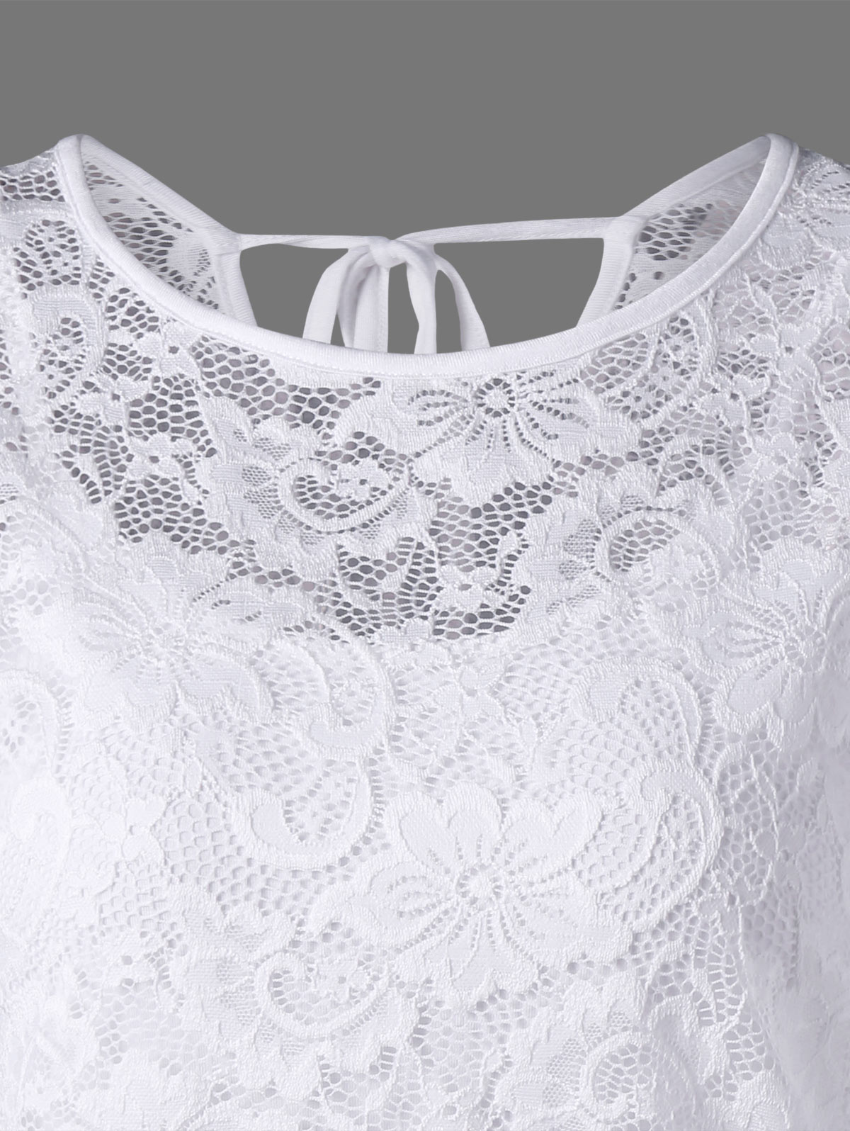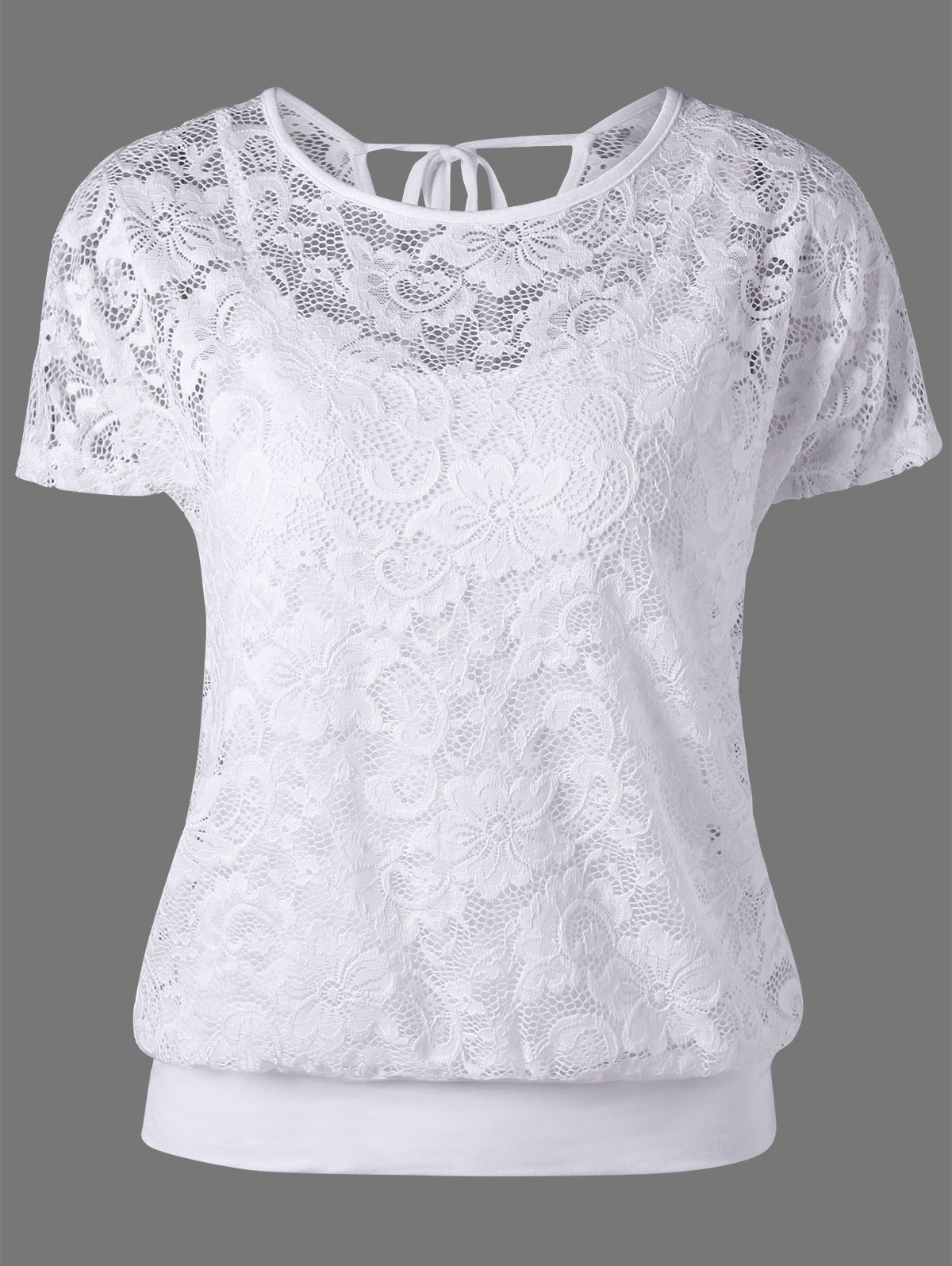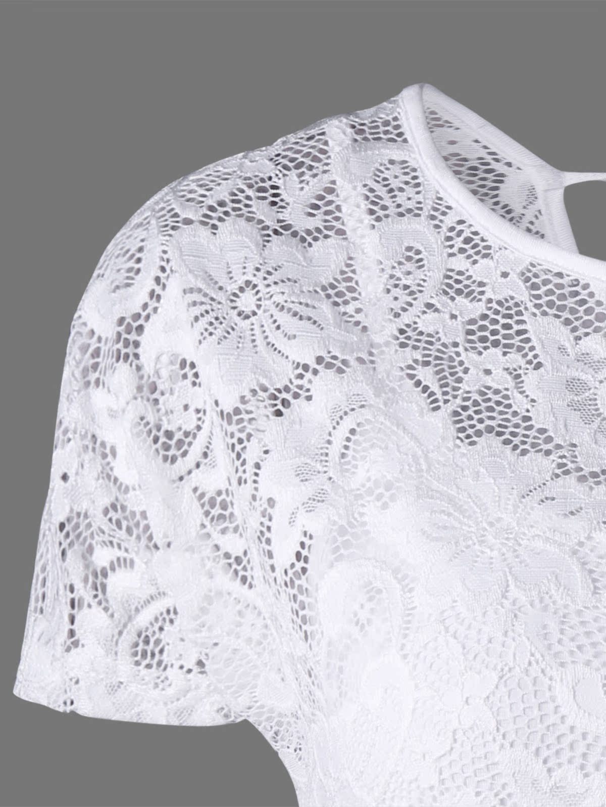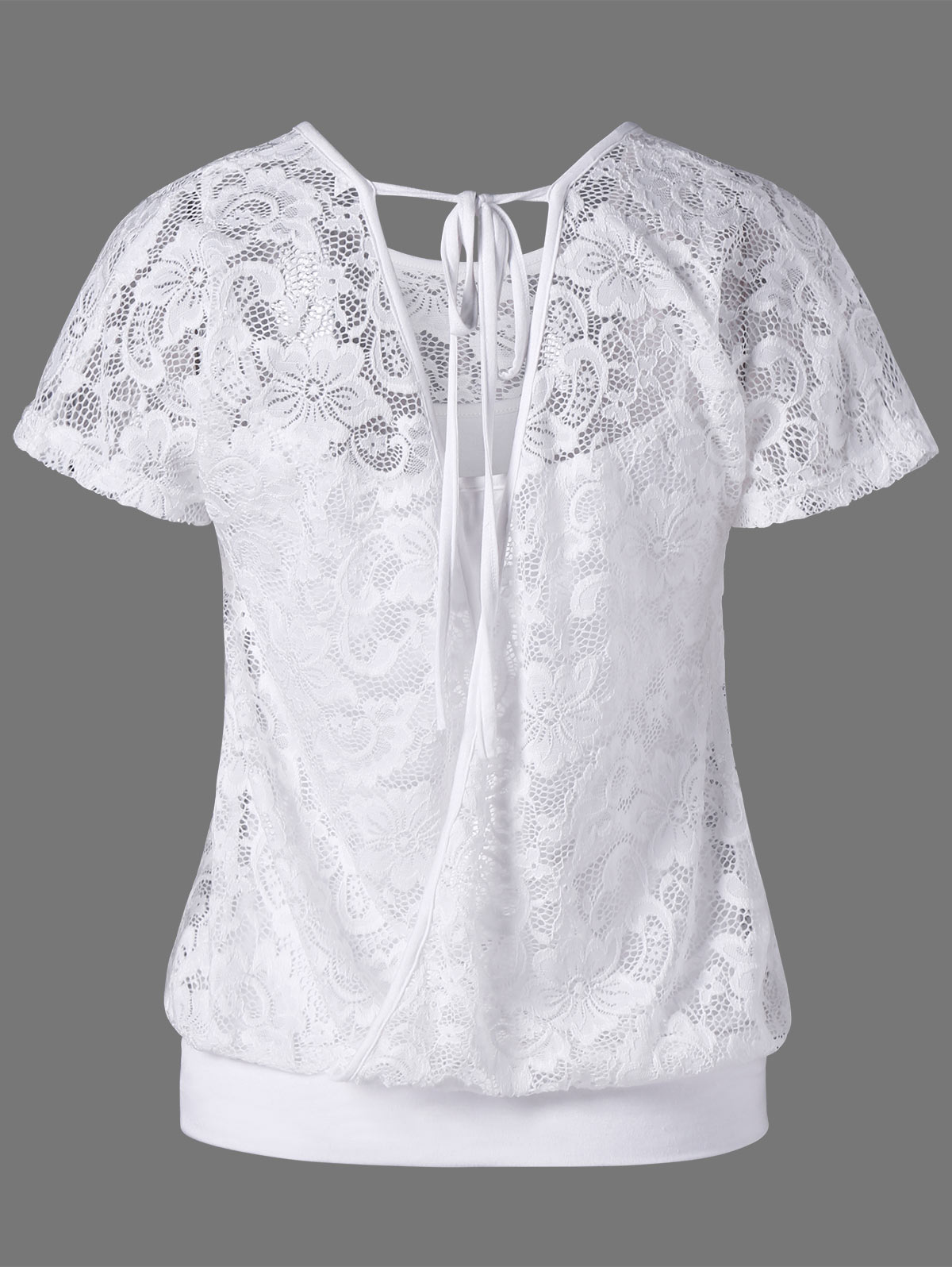 new and American women's short-sleeved lace flowers round neck leaky back jacket with vest 9104