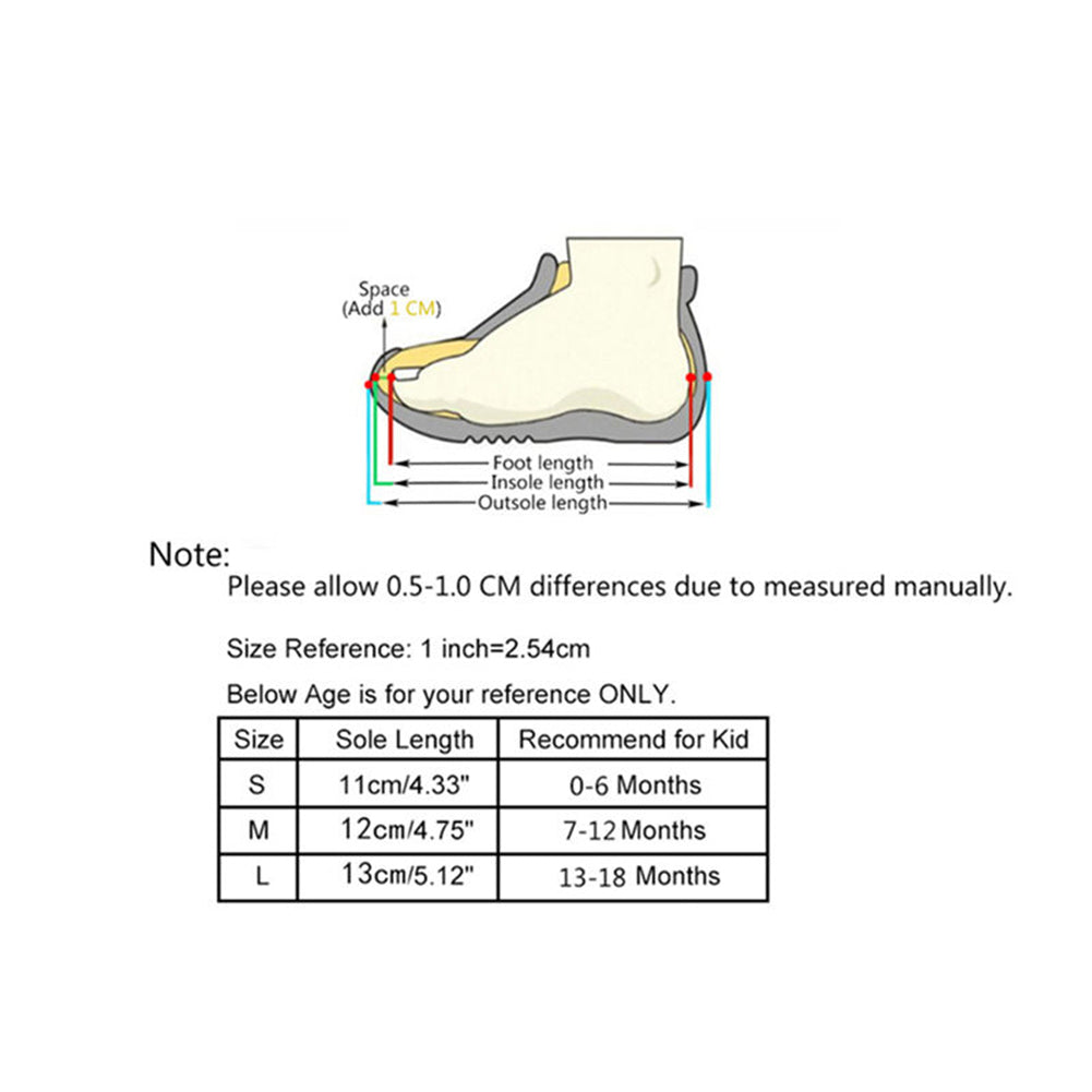 [Our Size S] Sole Length: 11cm/4.33", Recommend for Kid: 0-6 Months (Approx.)