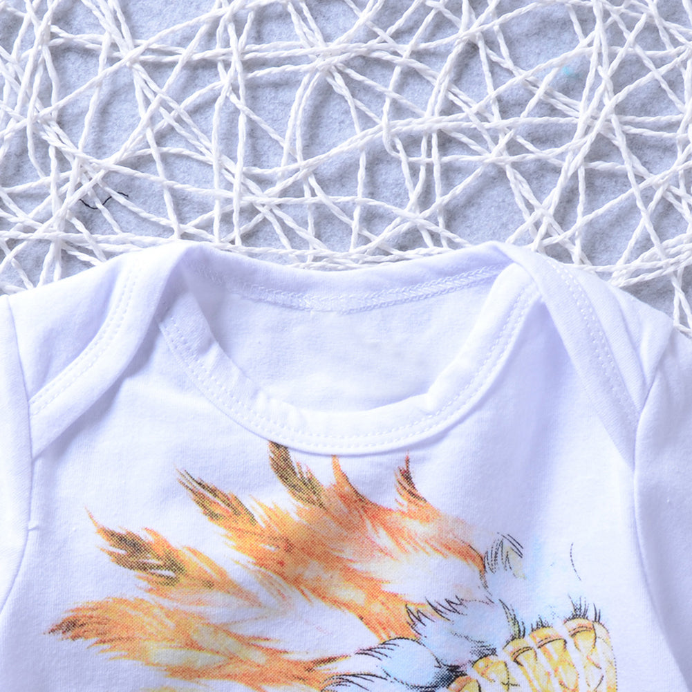 Newborn Baby Girls Boys Flower Short Sleeve Top Romper Pants Headband Outfits