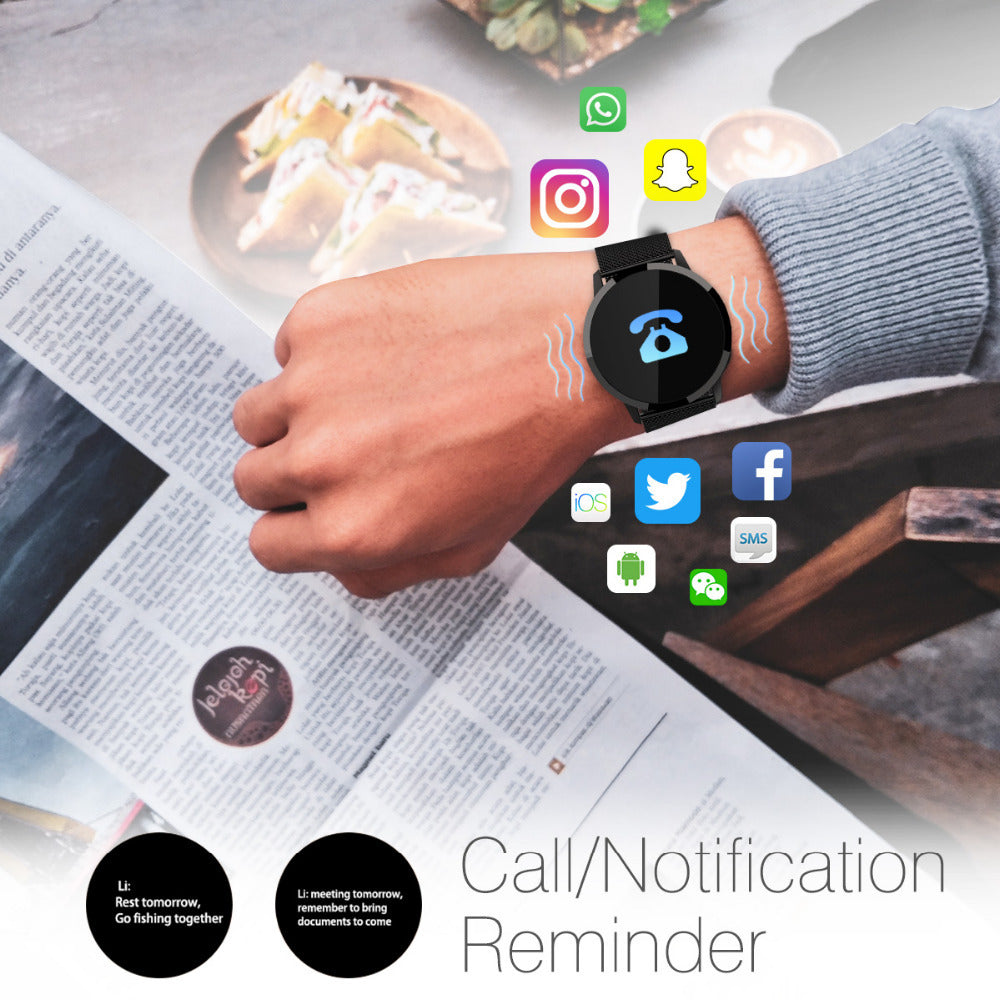 Multiple Function: The Fitness Tracker will track your steps, activities record, heart rate blood pressure and calories. And many other functions, such as Sedentary Reminder, Date/Time Display, Clock Alarm, Sleeping Monitor, More activity sports Mode (walking, running, riding), Supports Message and SNS Remind, Sedentary Remind, Alarm clock, Find phone, Remote camera shoot.