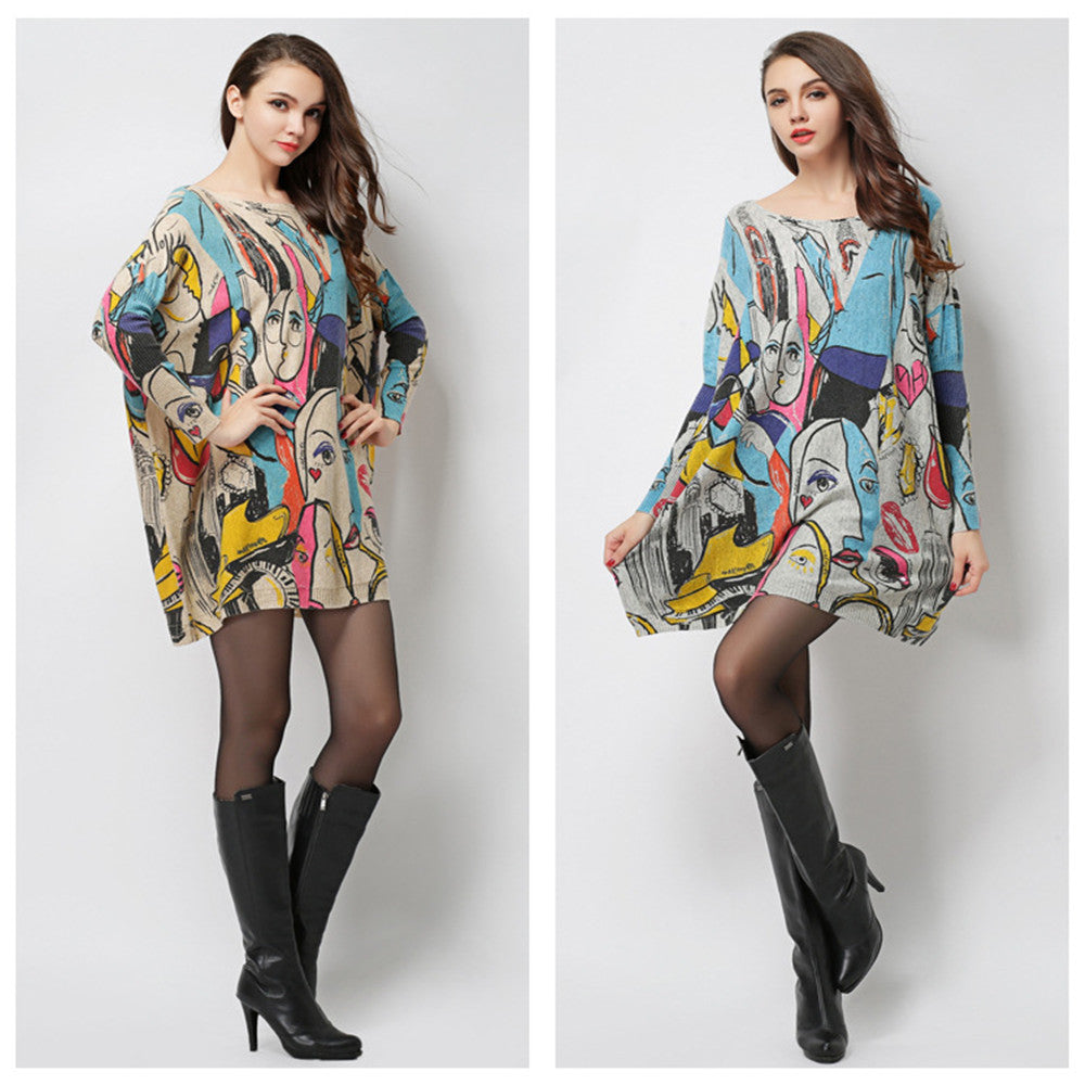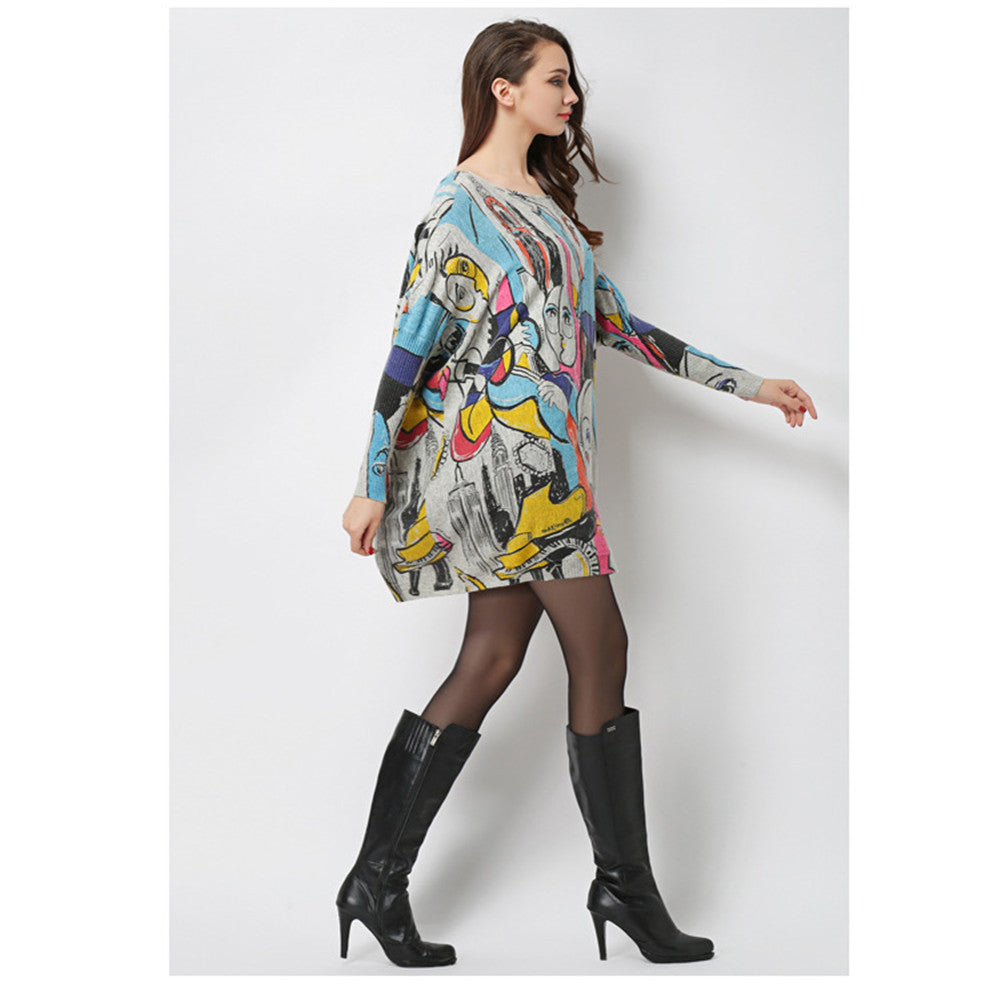 Oversized sweater women pullover top cartoon print plus size tops knitted sweaters wool blend pullovers fashion outwear HX11