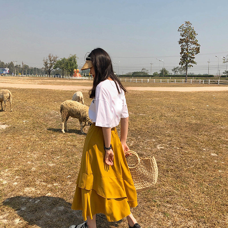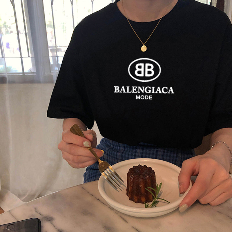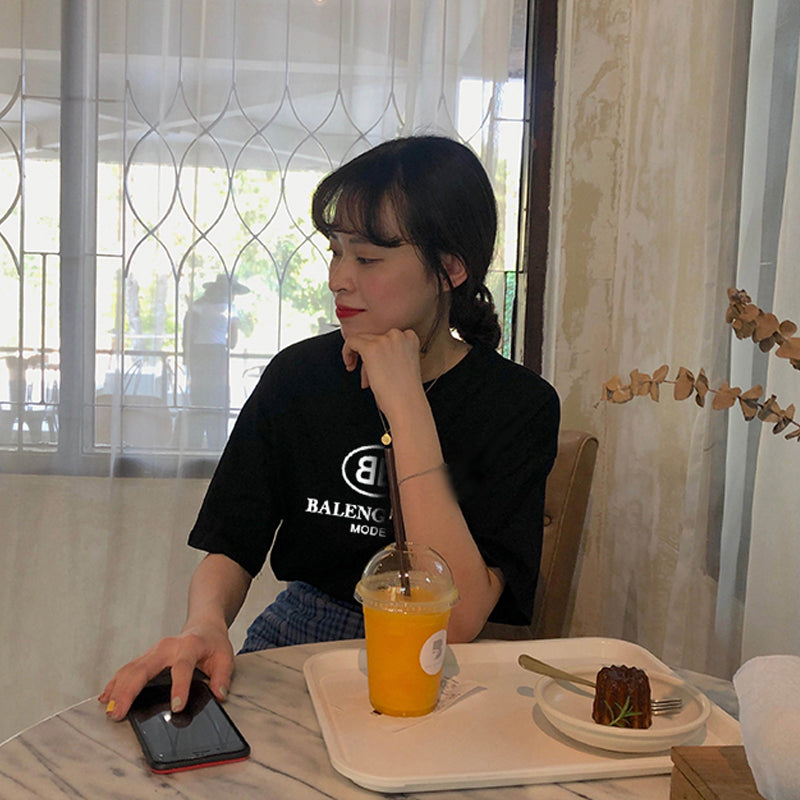 Pure cotton neckline printed letters simple loose version short-sleeved T-shirt