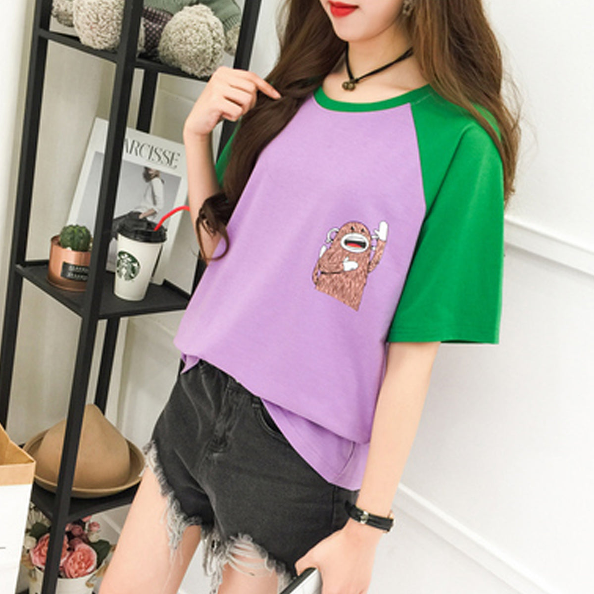 Reality beat 2019 new cotton loose short-sleeve print T-shirt women's spelling T-shirt