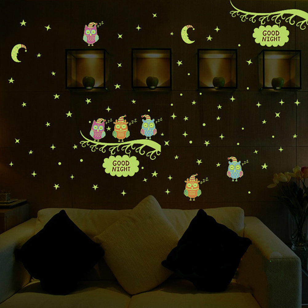 Features: Cartoon Owl Pattern, Removable Wall Stickers, Daily Gifts, Luminous, DIY Decorations