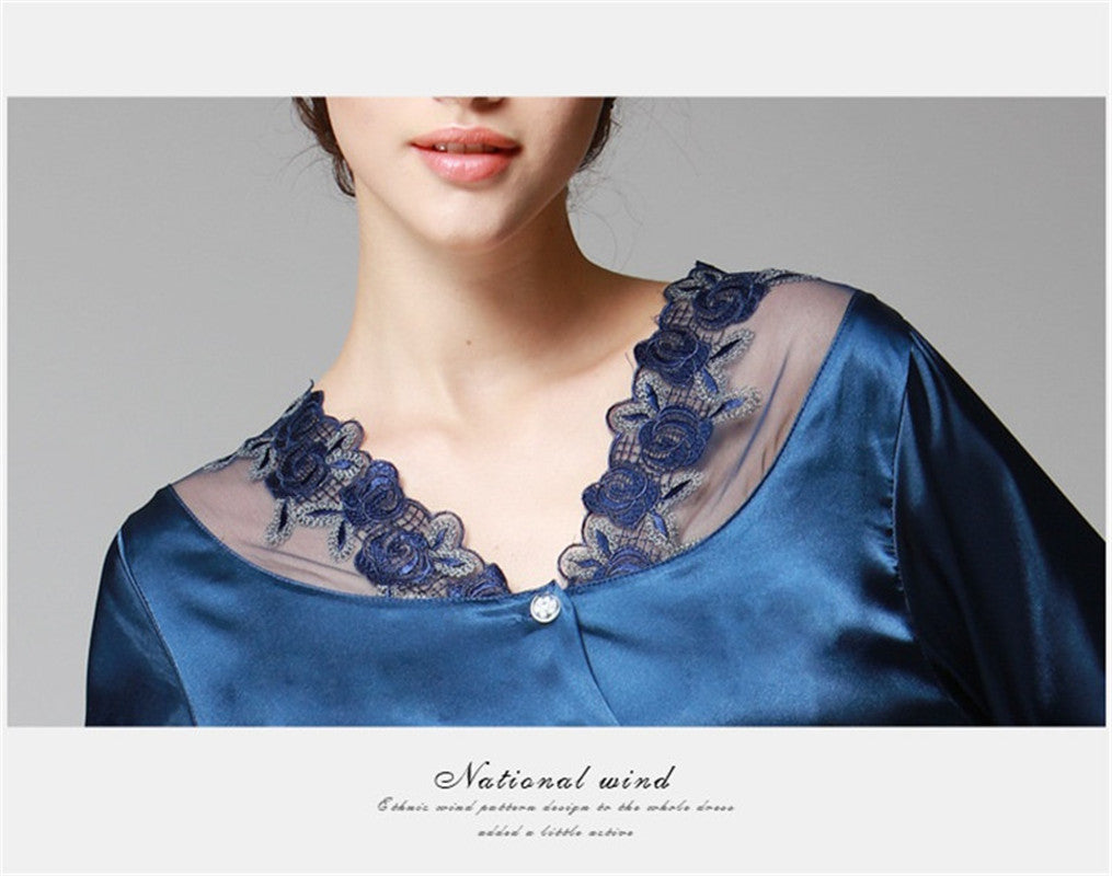 Satin Pajama Sets Women Imitated silk long pants lace sleepwear sexy lady Nightwear 2 Pieces SJYT54