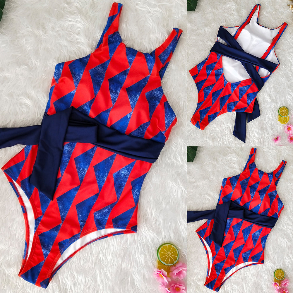 Sexy Triangle Print Women Monokini Bandage Backless One-piece Beach Swimwear