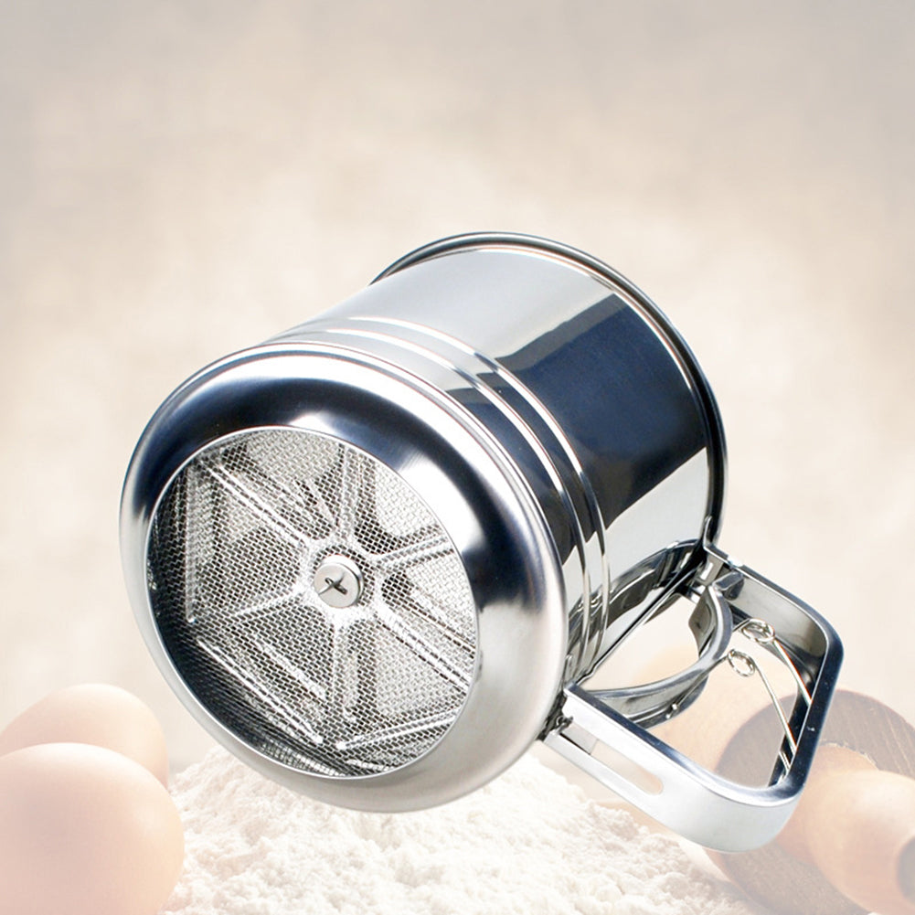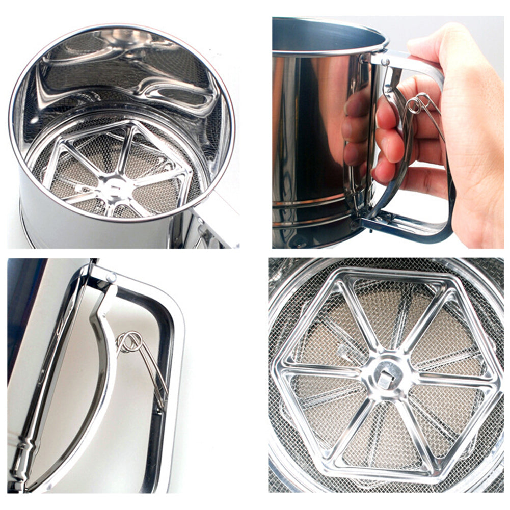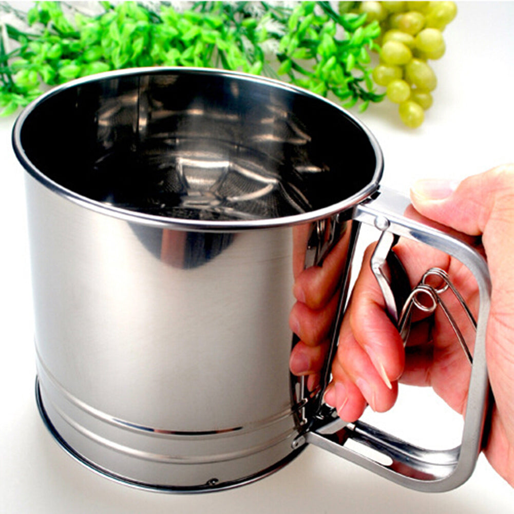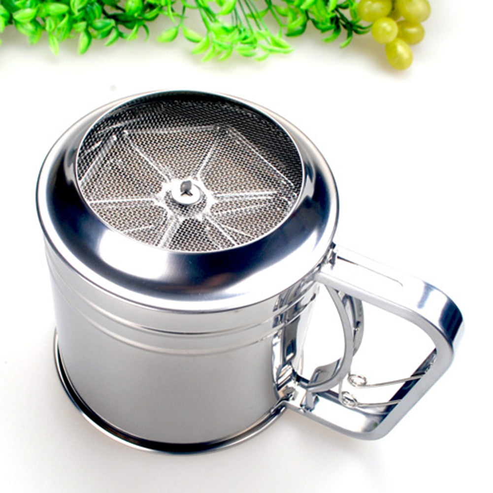 Stainless Steel Manual Dual-Layer Powder Flour Sieve Cup Mesh Filter Baking Tool