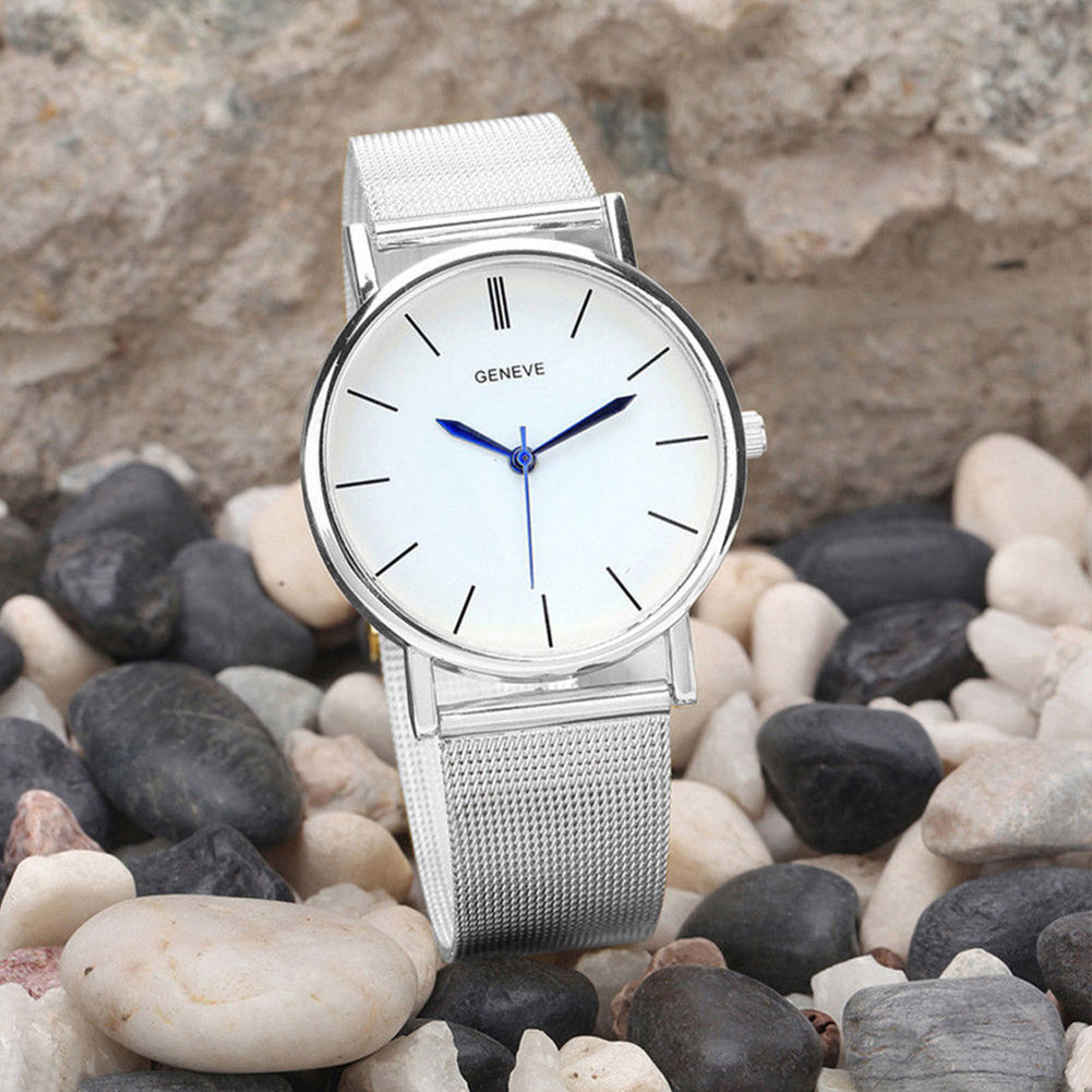 Stainless Steel Mesh Band Strap Men Women Quartz Wrist Watch Valentine's Gift