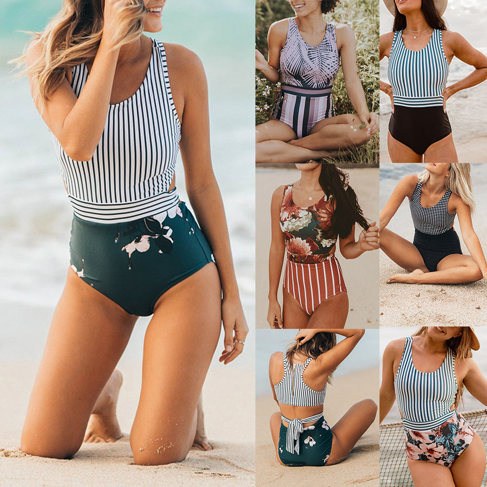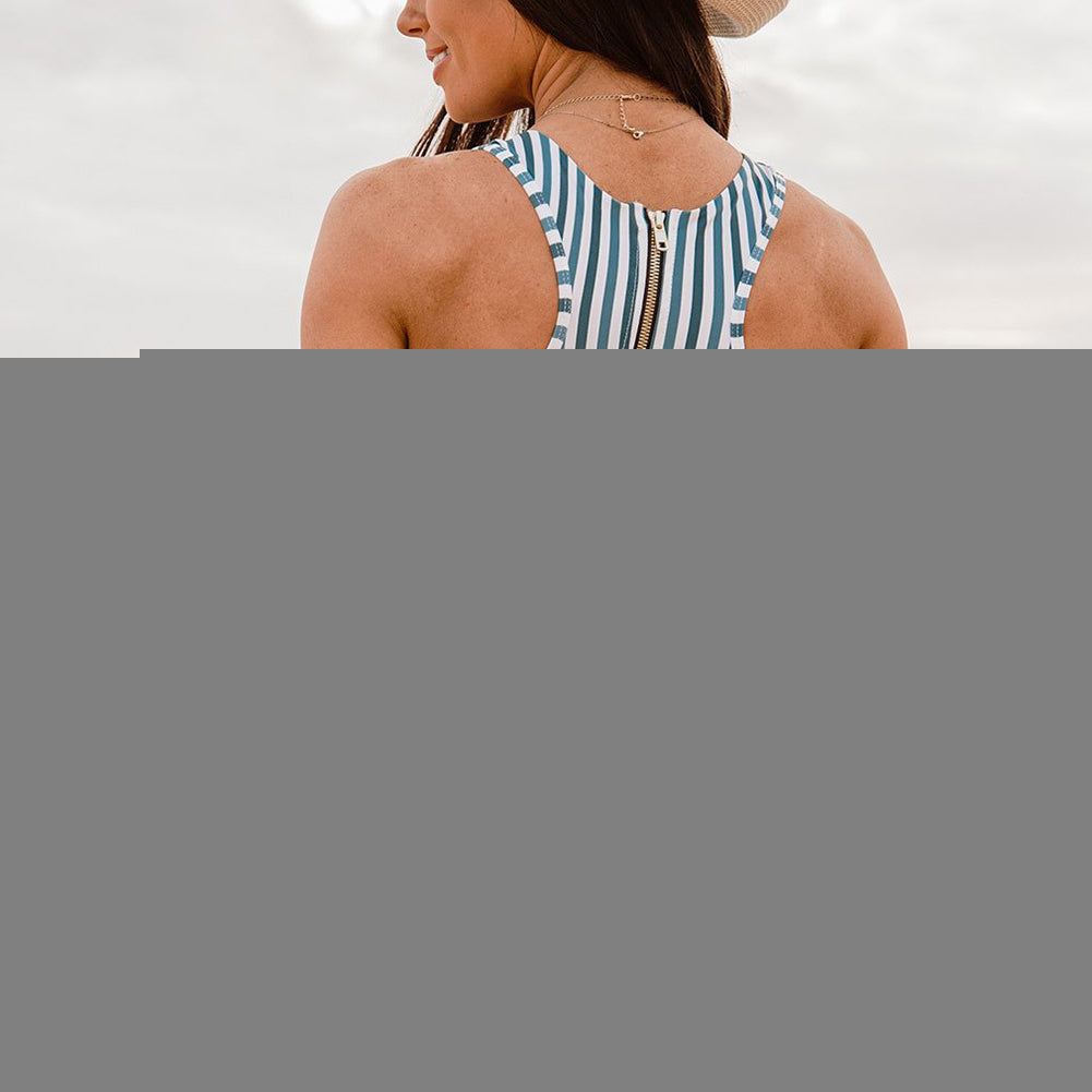 Stripe Patchwork Bandage Cutout Monokini Women Sexy One-piece Beach Swimwear