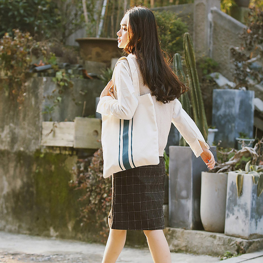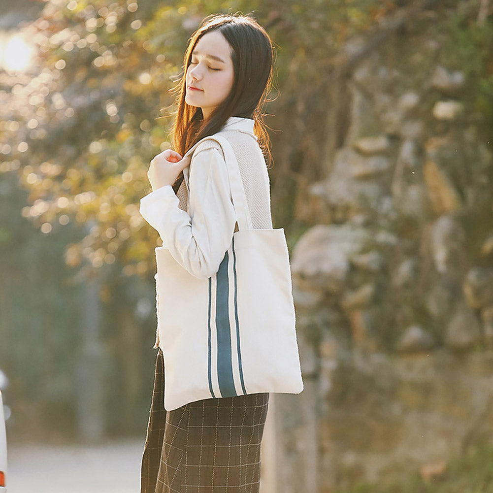 Stripe Print Minimalism Tote Canvas Handbag Women Shoulder Bag Shopping Pouch