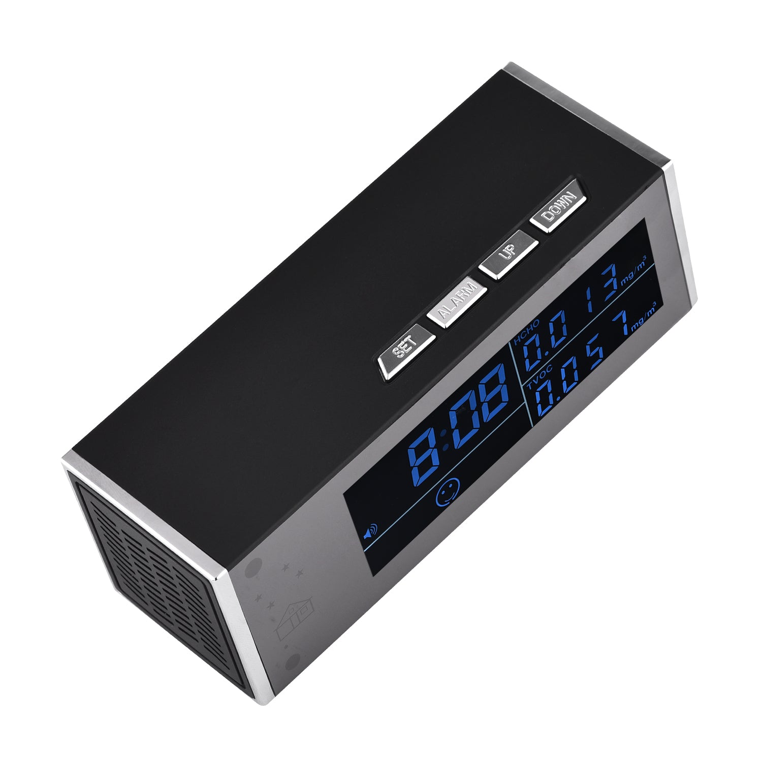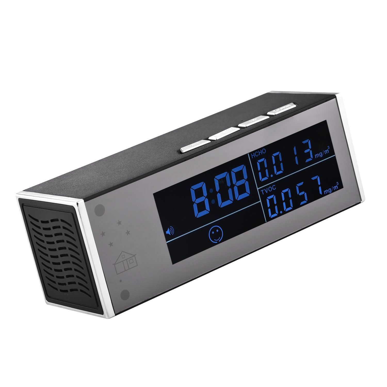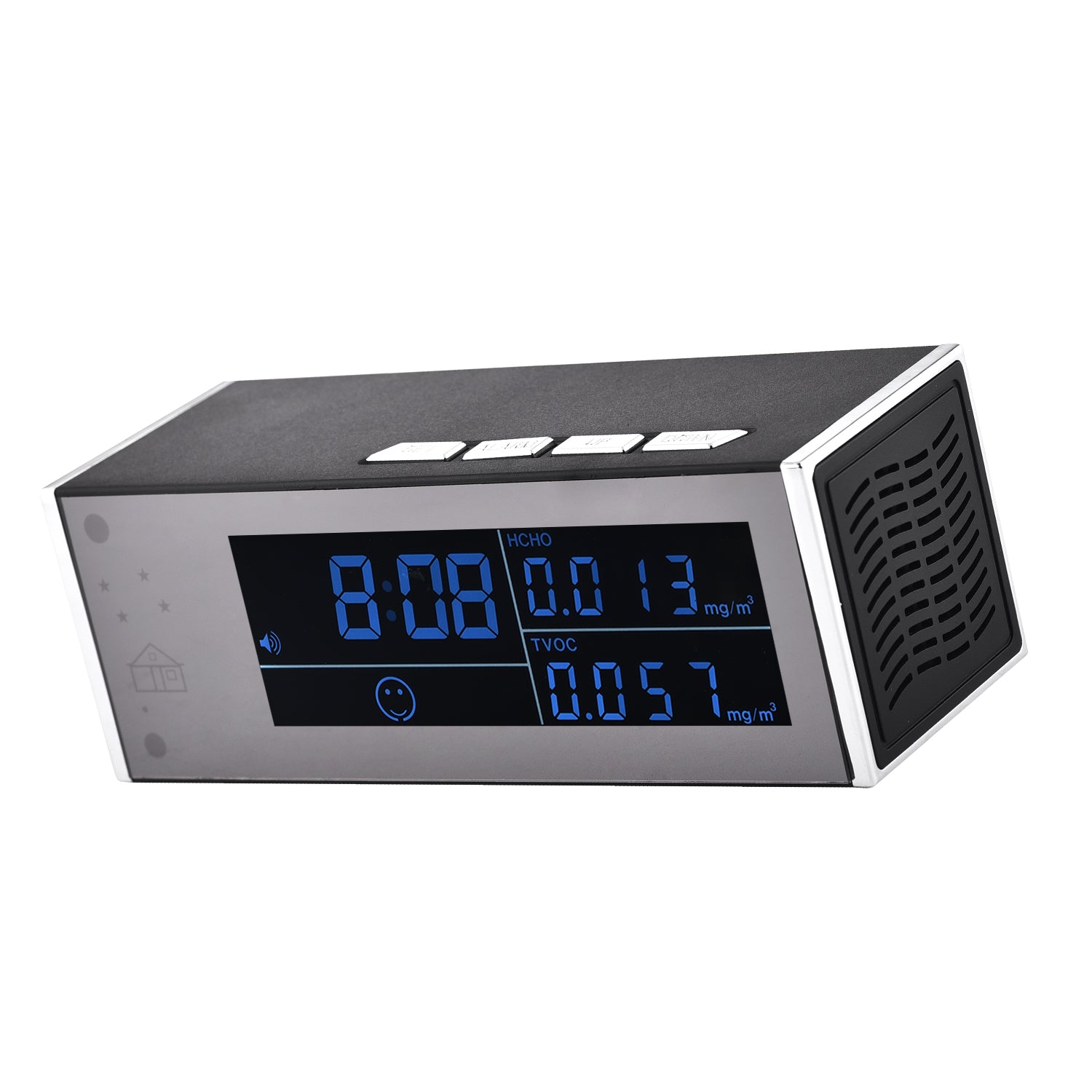 This is a kind of integrated home security equipment, equipped with built-in high-definition camera and air detection sensor, and can effectively obtain evidence and prevent thievery. Furthermore, it can effectively show the real-time concentration of formaldehyde and other compounds in air and suggests the concentration change with face image and light. For serious air pollution, for example, smoke - gas - paint and other harmful gases, it can promptly display the current value and send an urgent sound alarm. (The alarm value can be set)