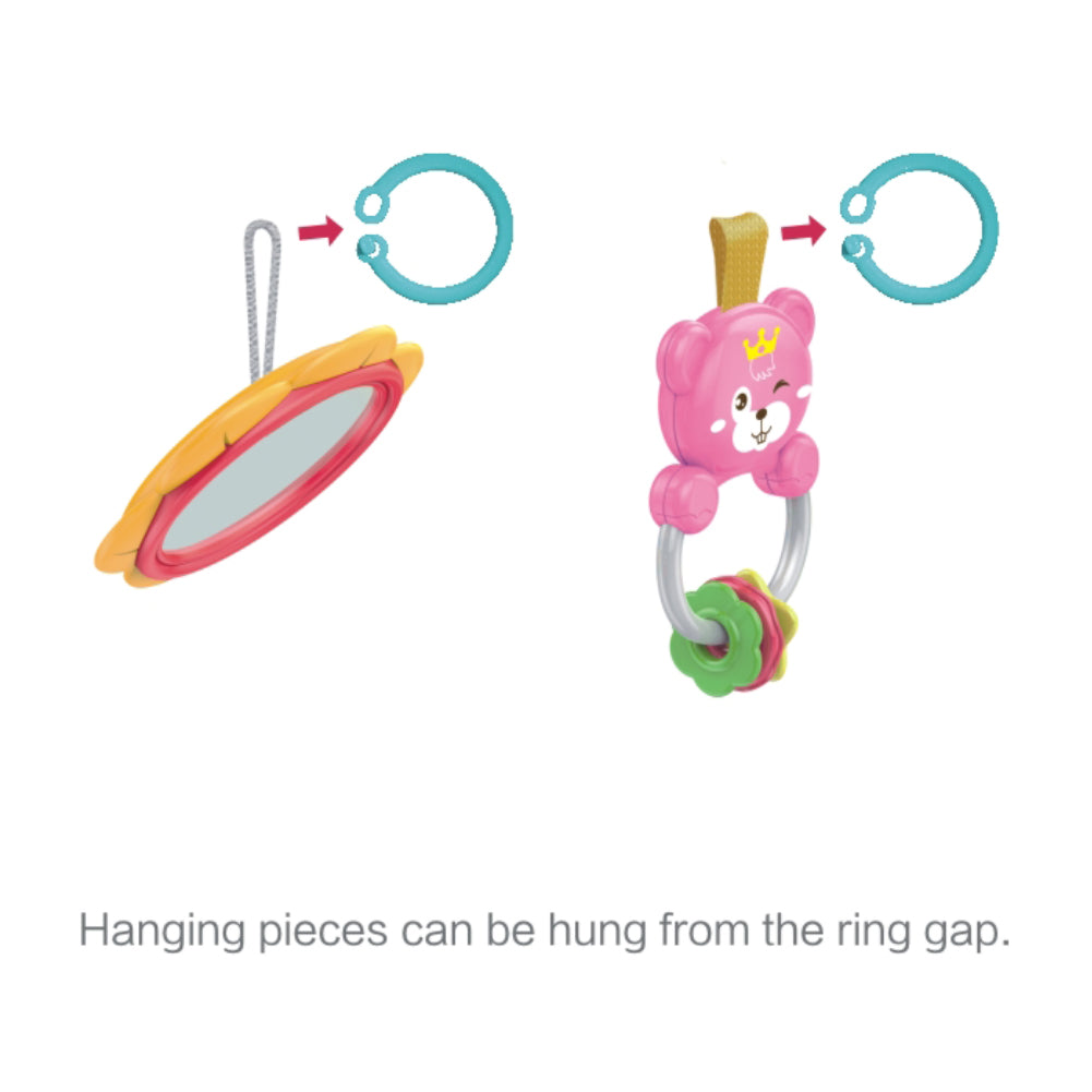 The item features a portable piano and 5 activity toys, it helps to stimulate baby's senses and enhances their activity skills.