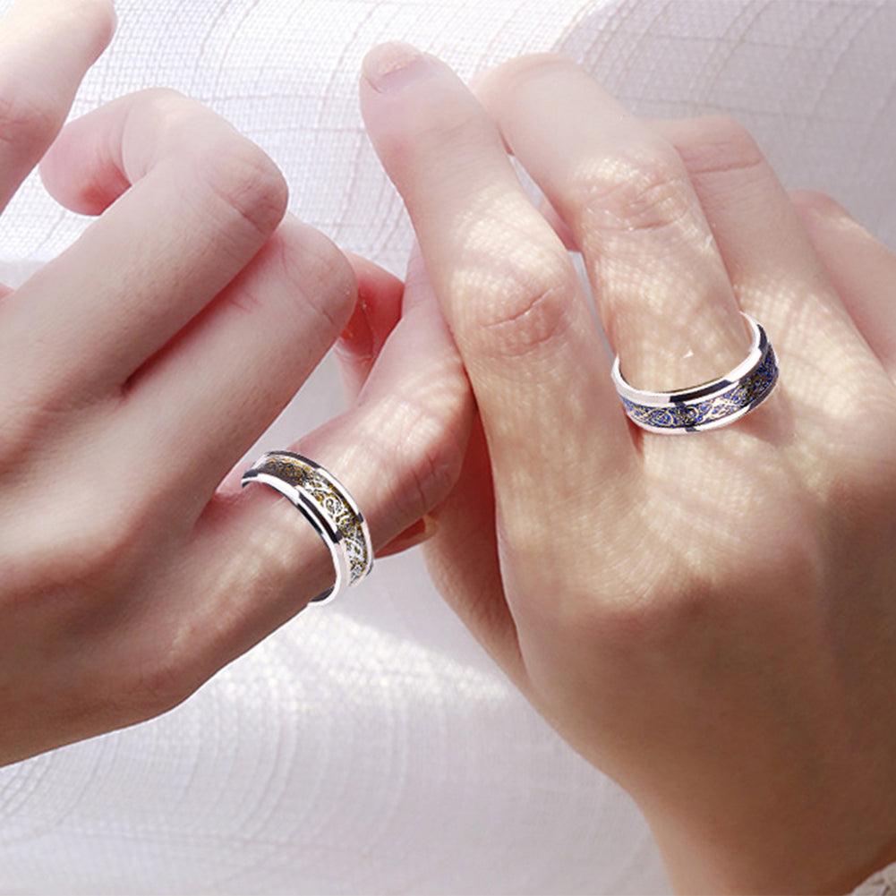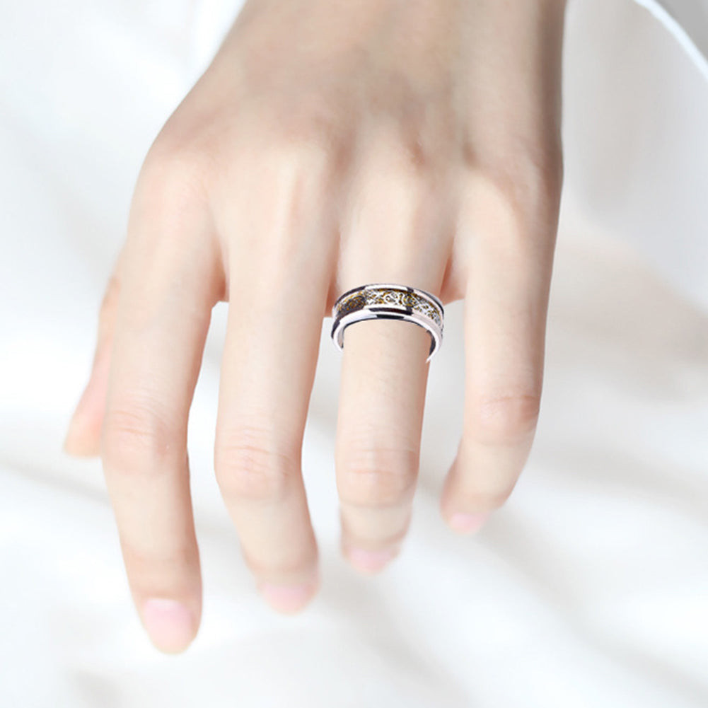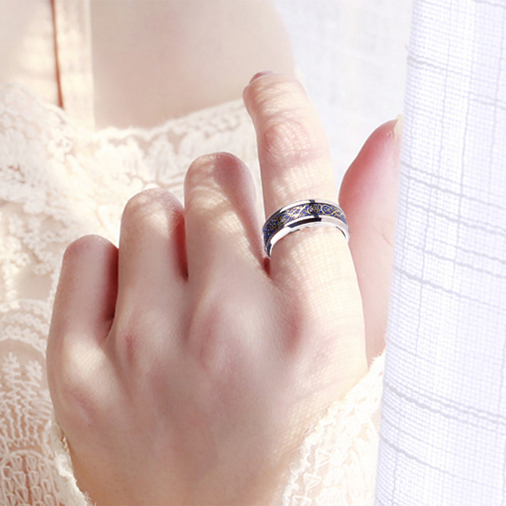 Unisex Dragon Pattern Rhinestone Titanium Steel Ring Engagement Jewelry Gift