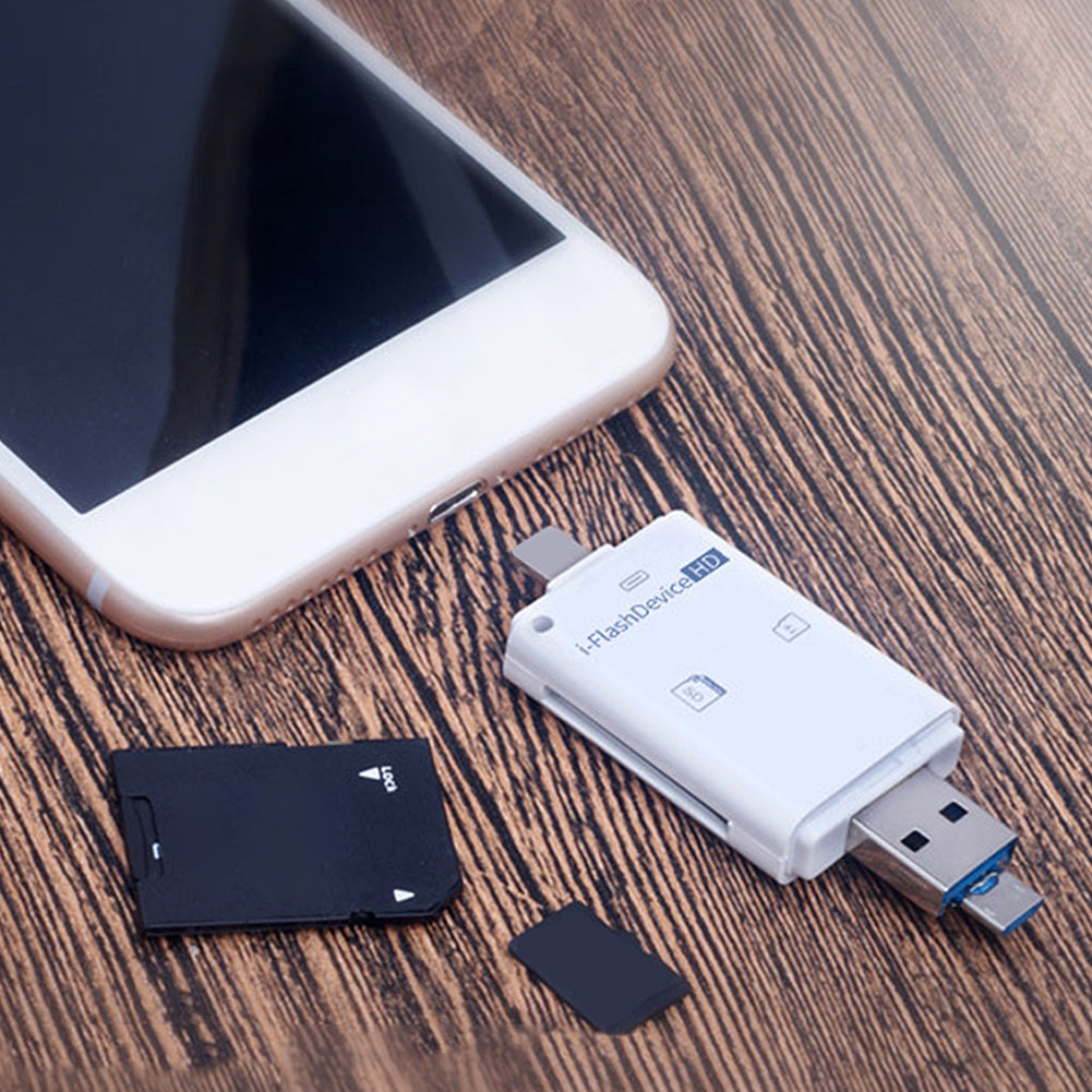 3 in 1 card reader for USB 3.0, for Micro USB and for iPhone.