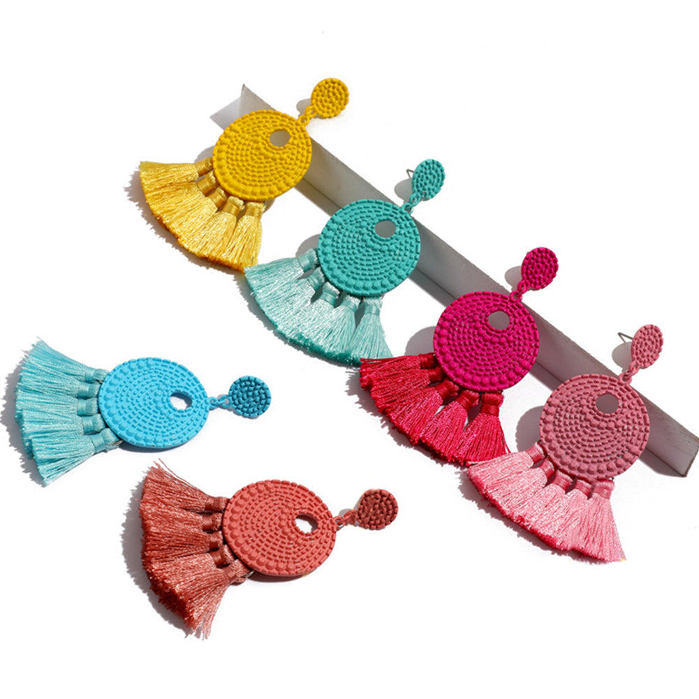 Vintage Round Tassel Earrings Club Party Accessory Women Jewelry Birthday Gift