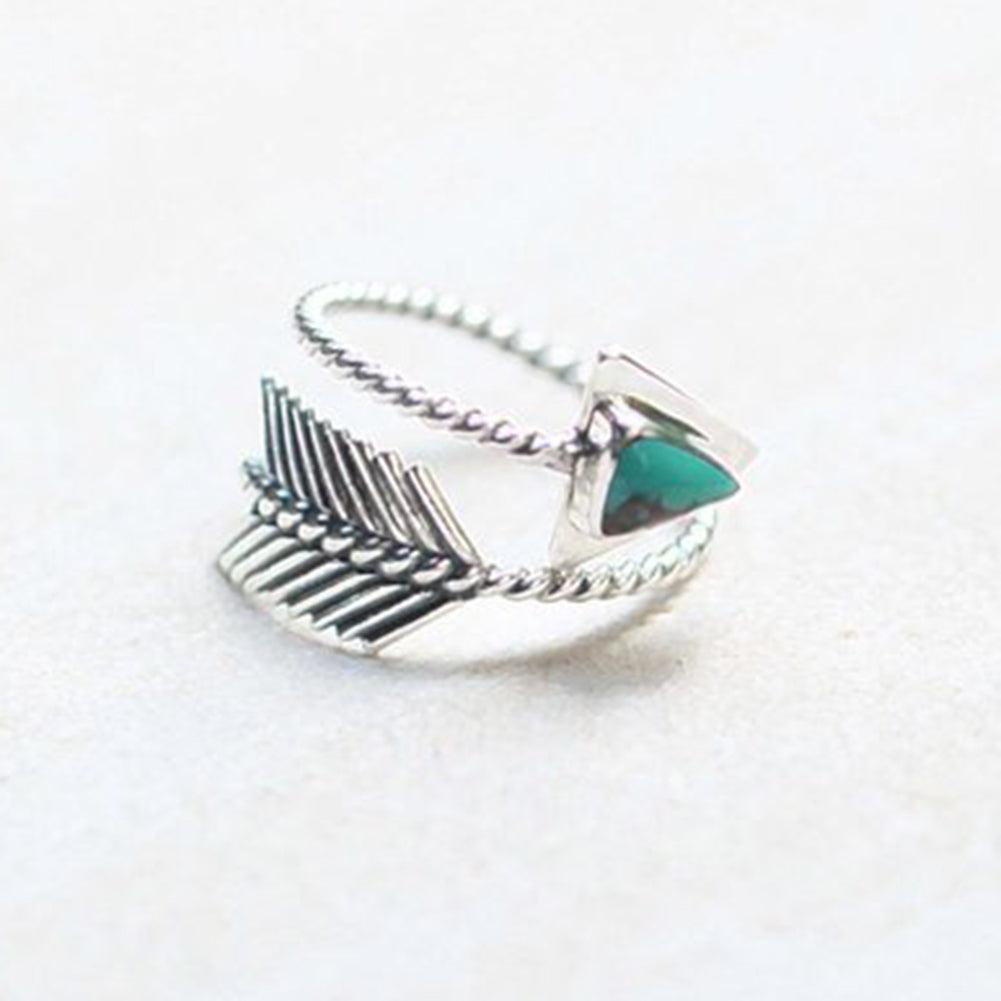 Vintage Women Triangle Faux Turquoise Arrow Open Ring Adjustable Finger Jewelry