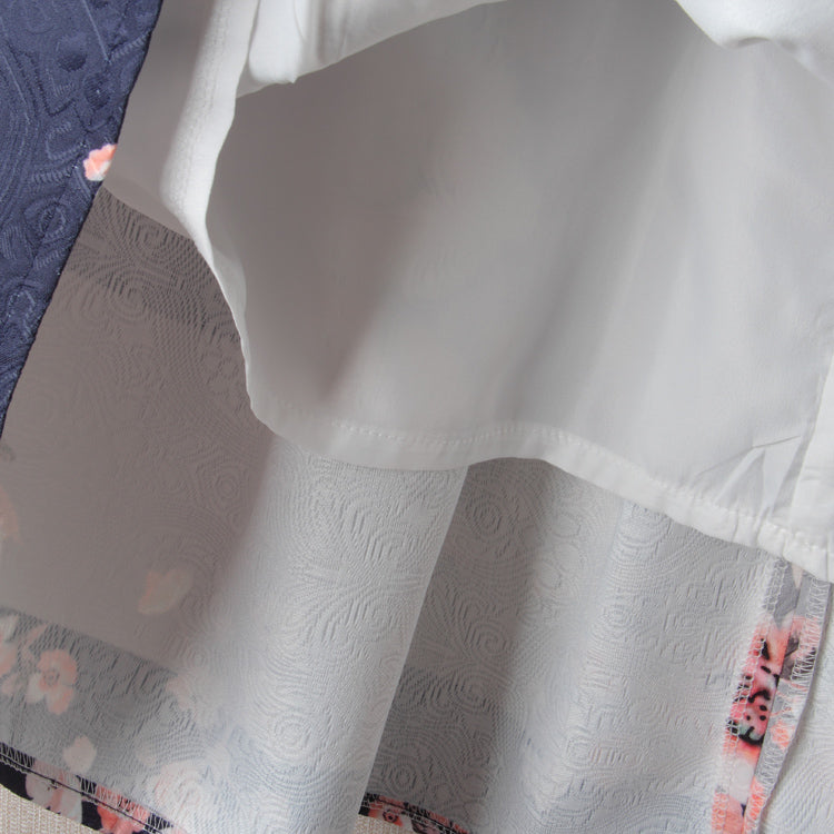 Winter Autumn Women Vintage Flower Print Ball Gown Pleated High Waist Tutu Midi Blue Skater Knee Length Skirts Spring