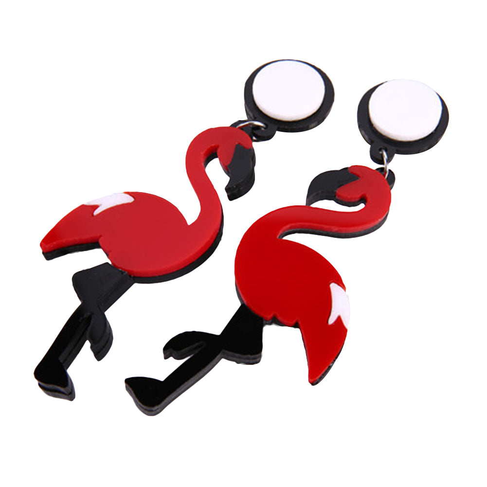 Women Animal Swan Flamingo Shaped Pendant Acrylic Ear Stud Earrings Jewelry