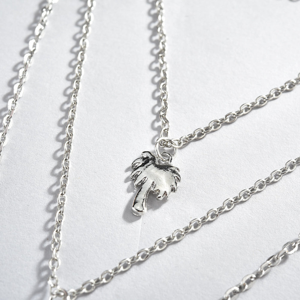 Solid color multi-layer necklace with coconut tree, scallop and fish tail pendant, look very charming.