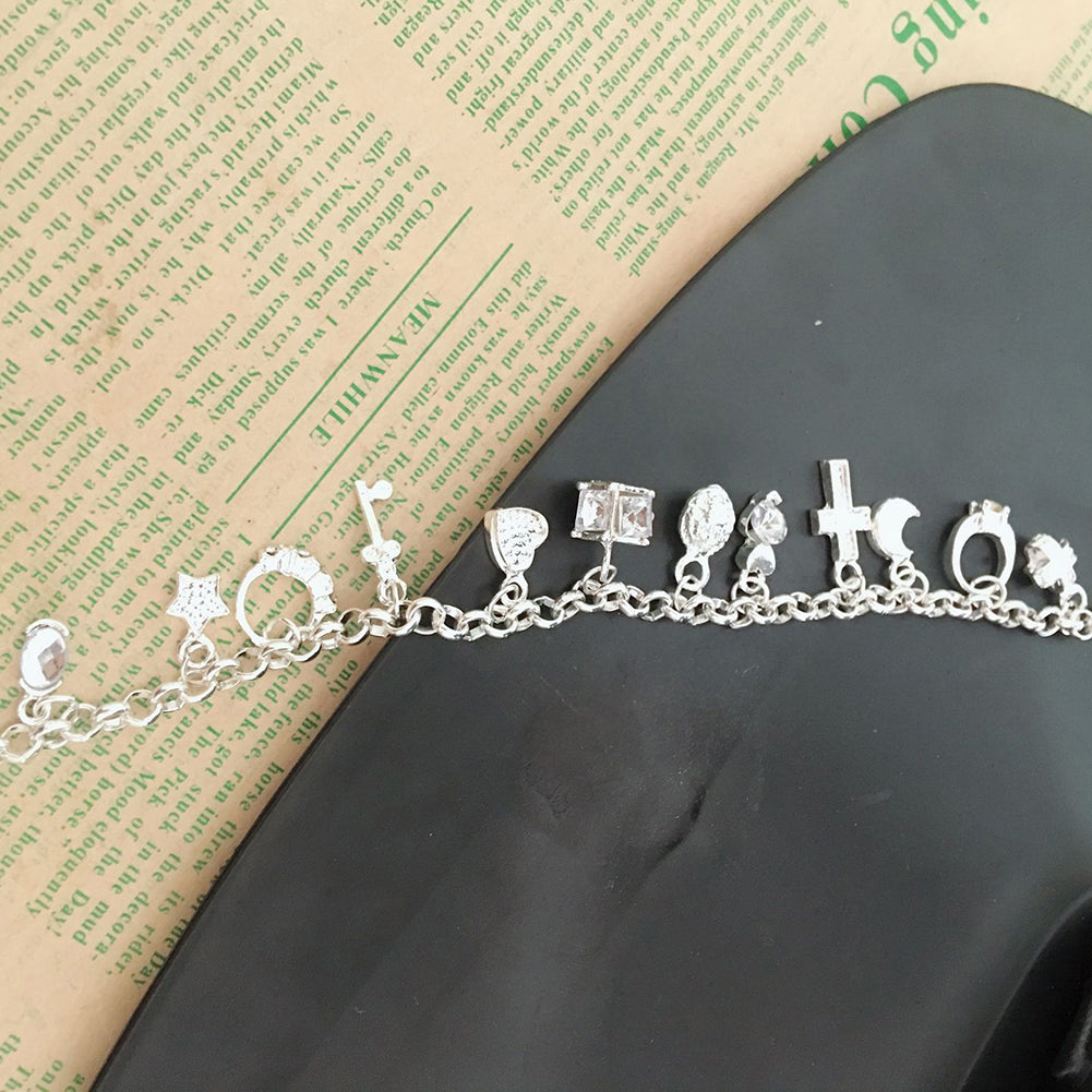 Women Silver Plated Cross Moon Star 13 Charms Pendants Bracelet Bangle Jewelry