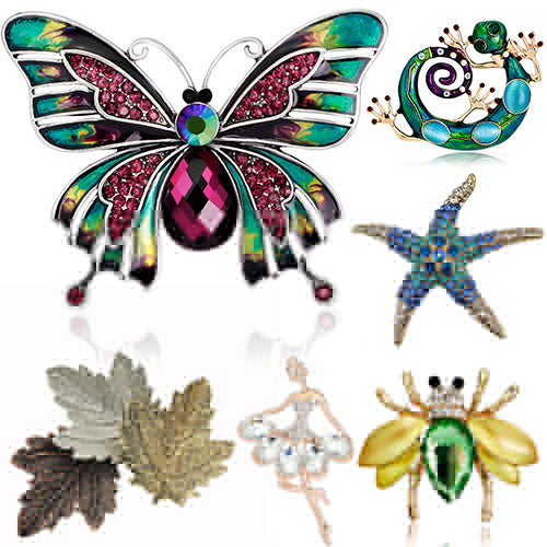 Women's Animal Flower Starfish Faux Pearl Rhinestone Sweater Scarf Brooch Pin