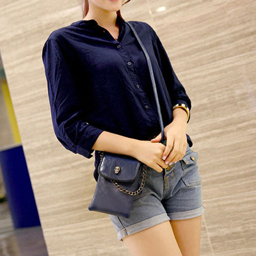 Women's Fashion Faux Leather Skull Pattern Mini Messenger Bag Phone Bag Handbag