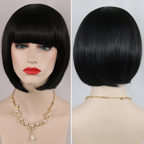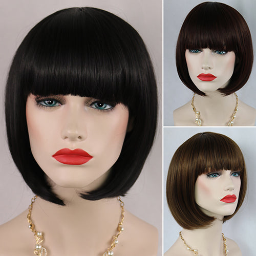 Women's Fashion Short Straight Bobo with Bangs Full Wig Cosplay Party Extension