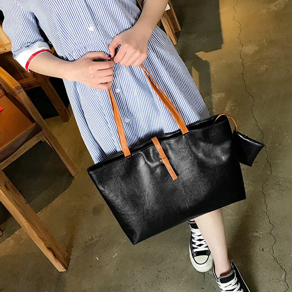 Women's Faux Leather Tote Shoulder Bag Handbag