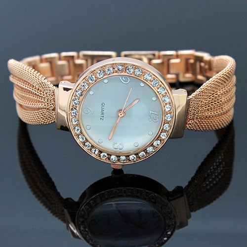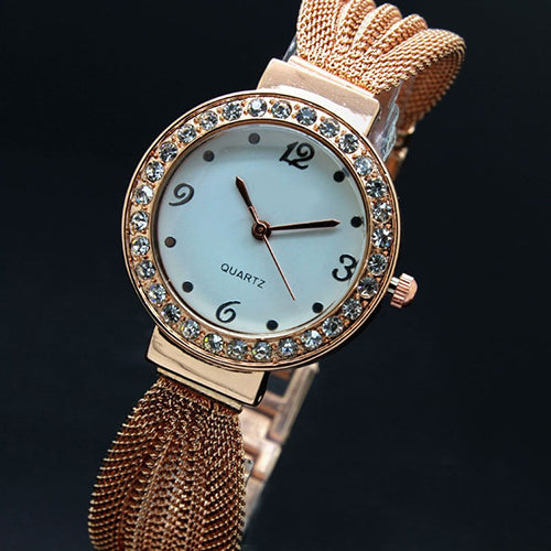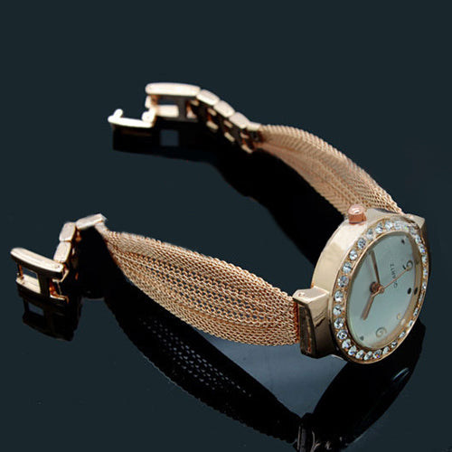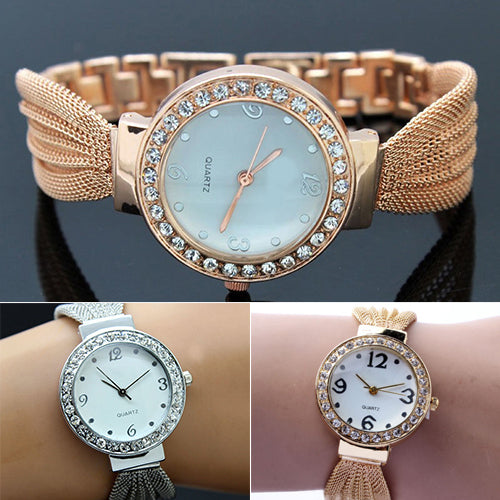 Features: Inlaid Rhinestone Dial, Mesh Band, Bracelet Watch