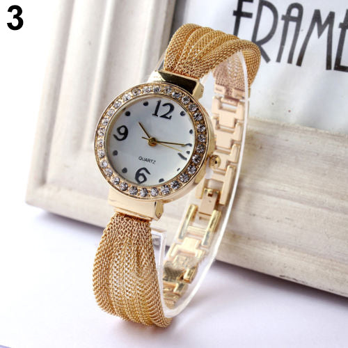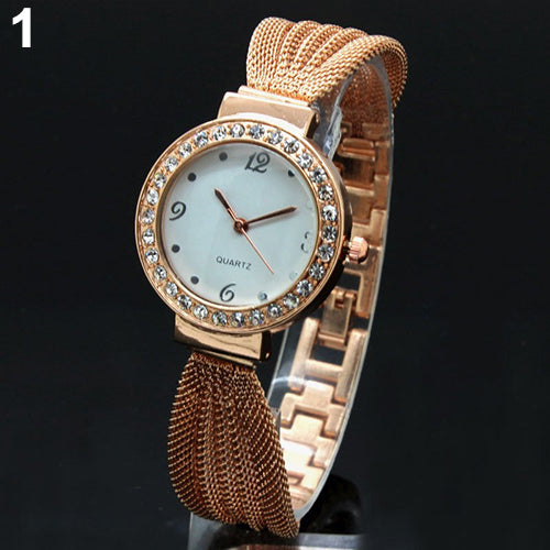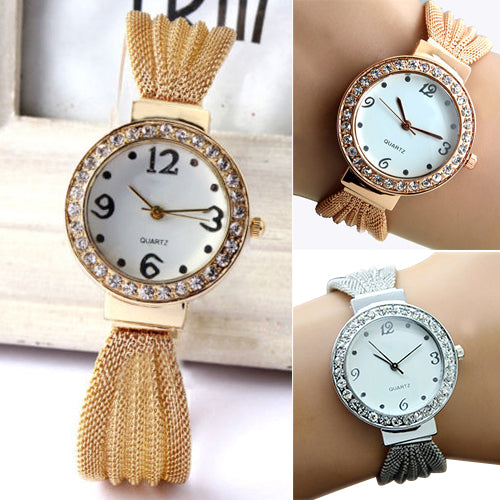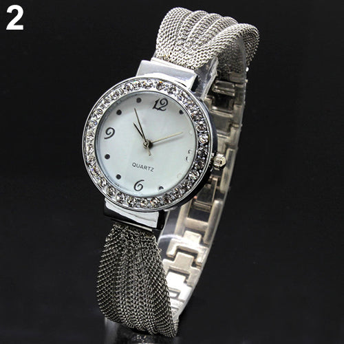 Women's Inlaid Rhinestone Mesh Band Bangle Quartz Analog Bracelet Wrist Watch