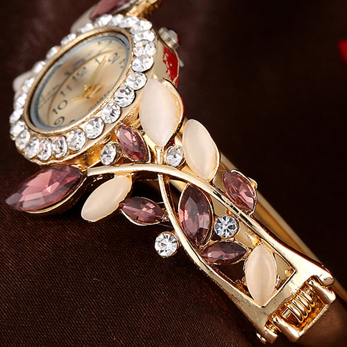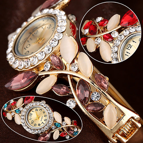 Features: Easy to Read, Leaf Bangle, Rhinestone, Fashion Watch