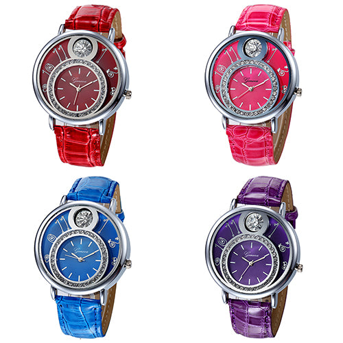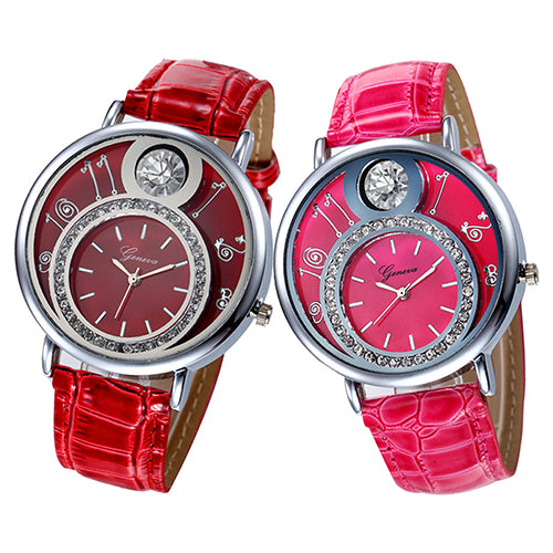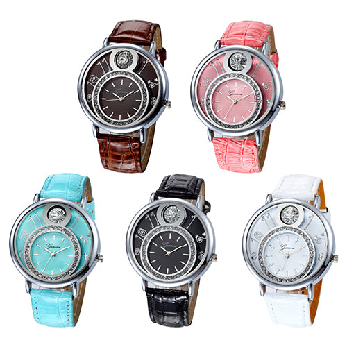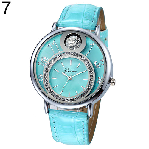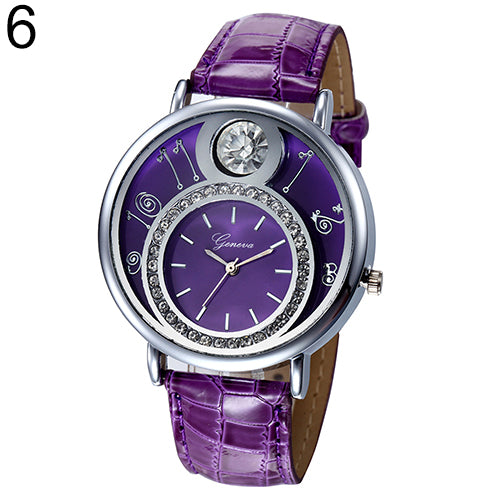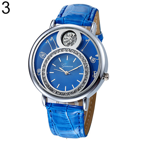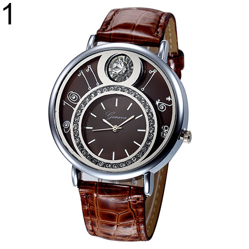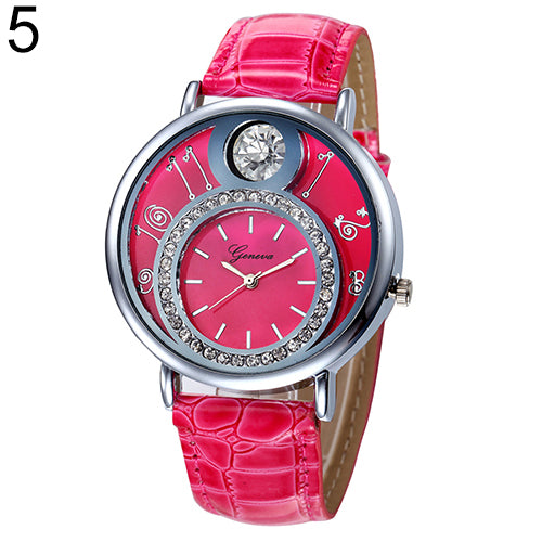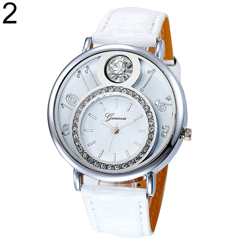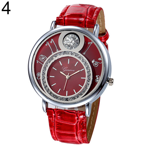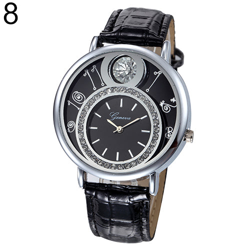 Women's Luxury Rhinestone Round Dial Faux Leather Strap Quartz Wrist Watch