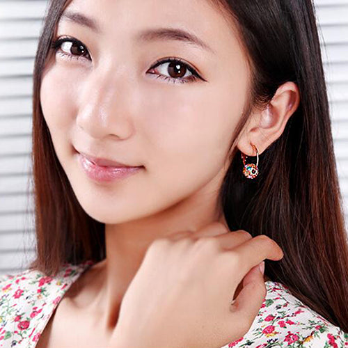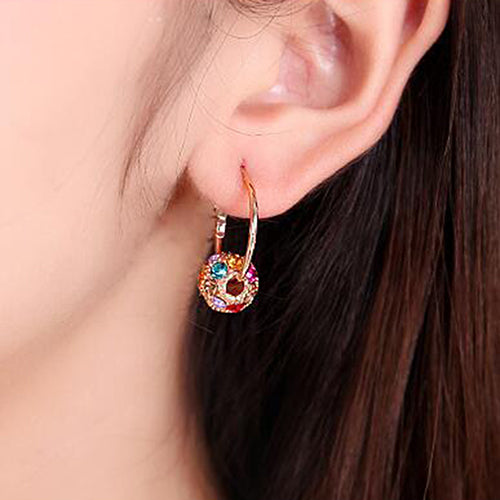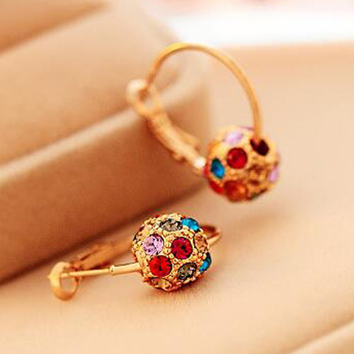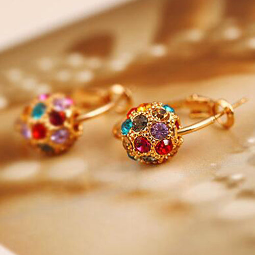 Featuring huggie style, leverback fastening, colorful rhinestones ball drop, very eye-catching and lovable.