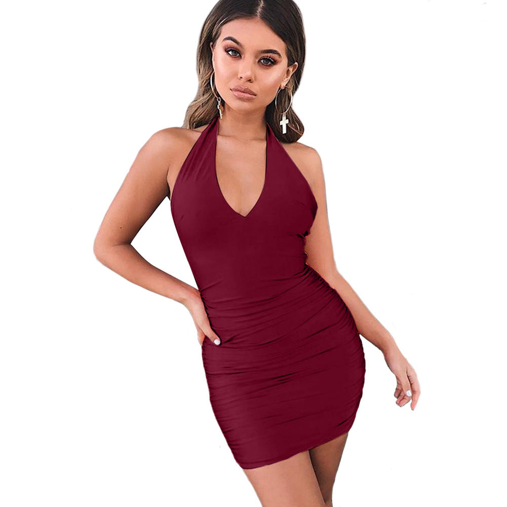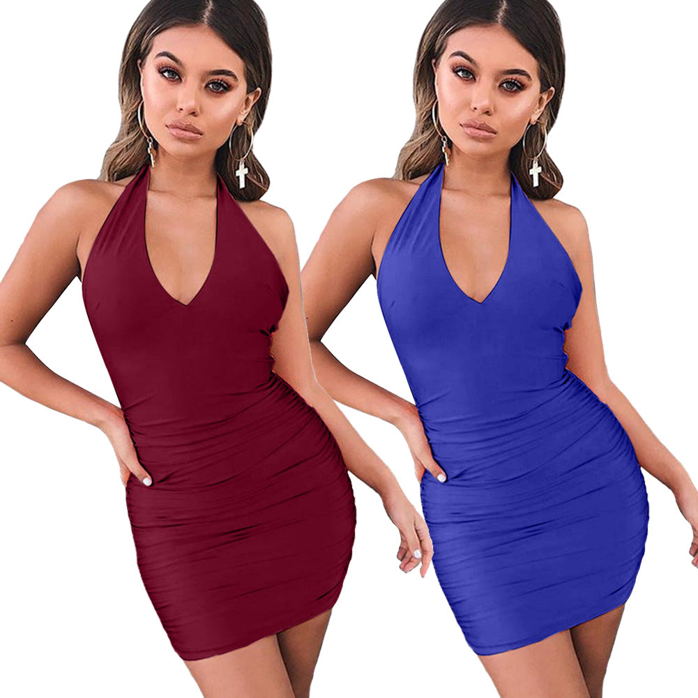 Women's Sexy Backless V Neck Solid Color Sleeveless Bodycon Summer Dress