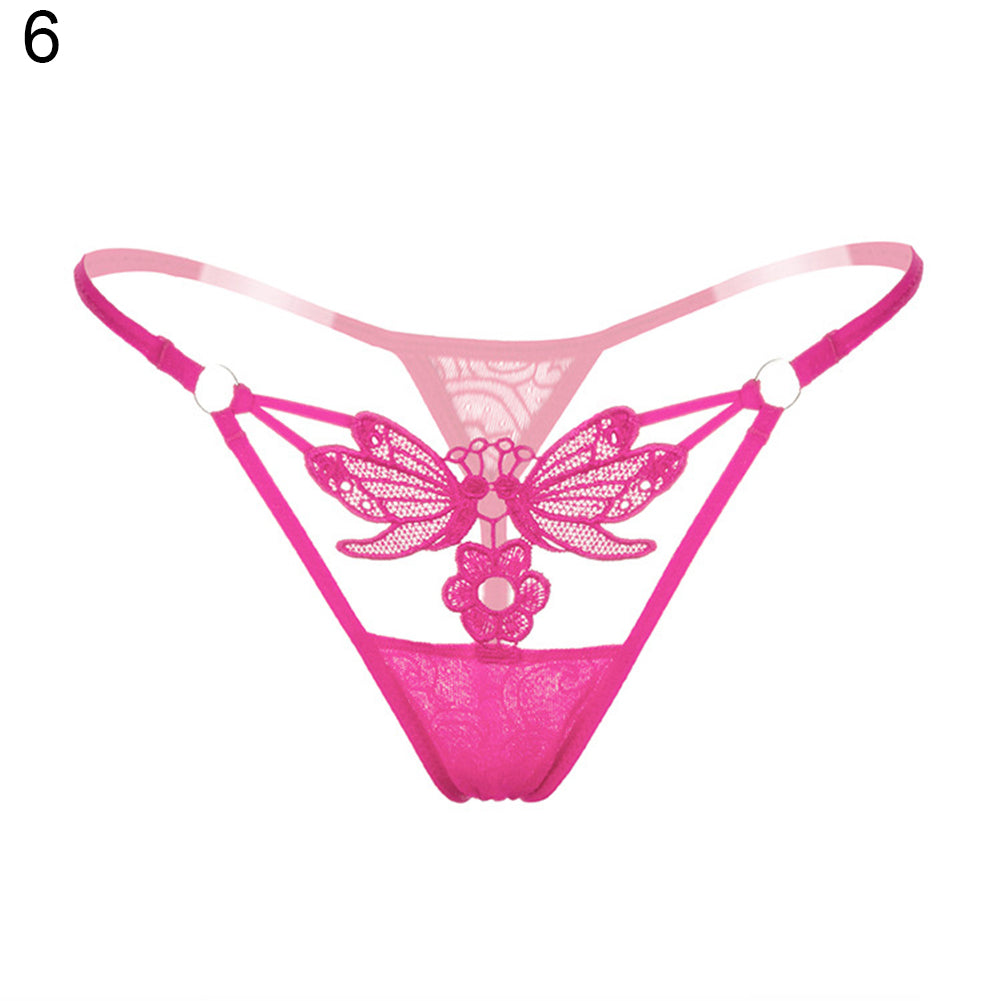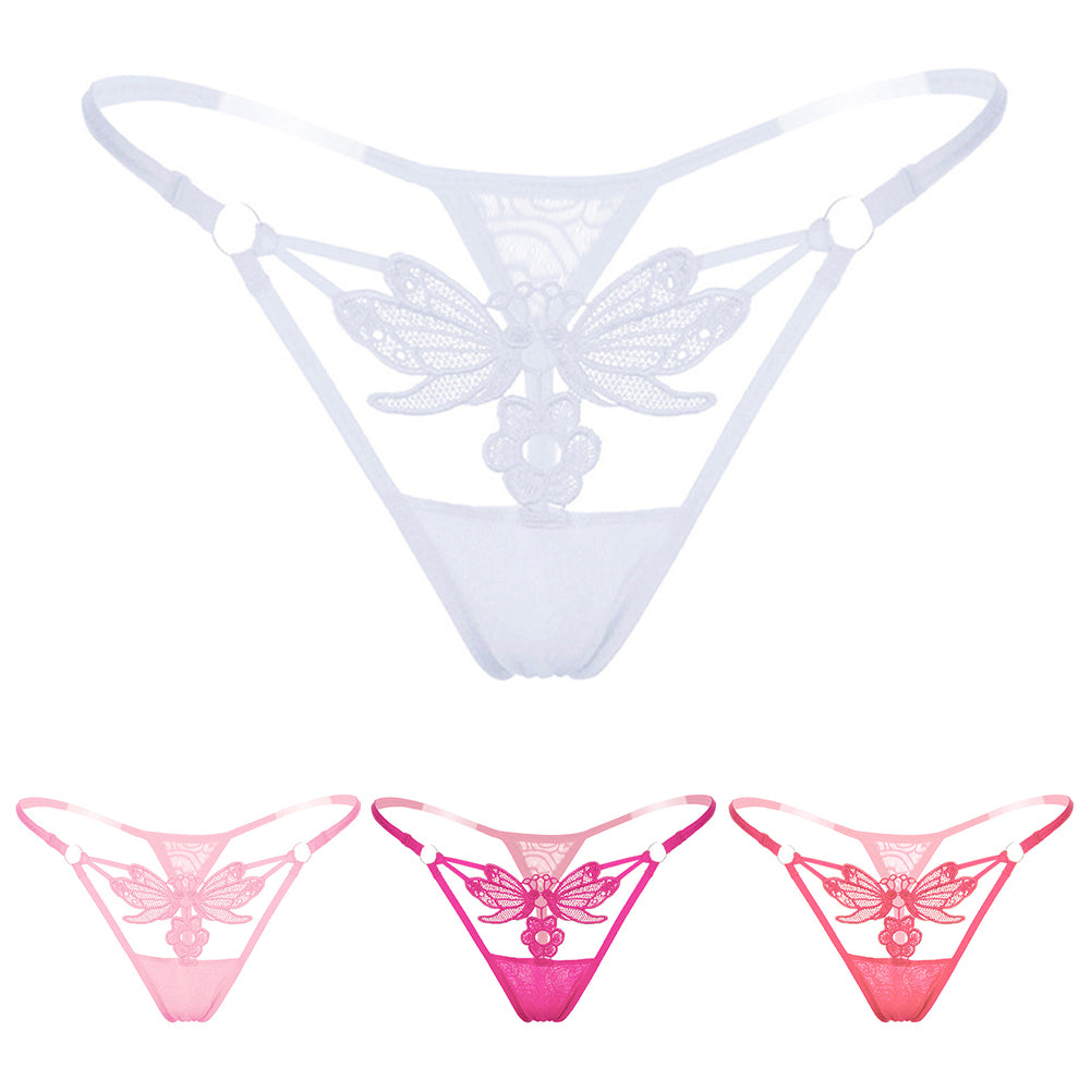 Women's Sexy Butterfly Flower Lace See Through Low Rise G-String Briefs Panties
