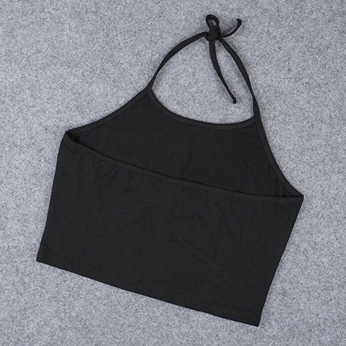 Women's Sexy Fashion Letter Print Halter Neck Sleeveless Tank Top Crop Top