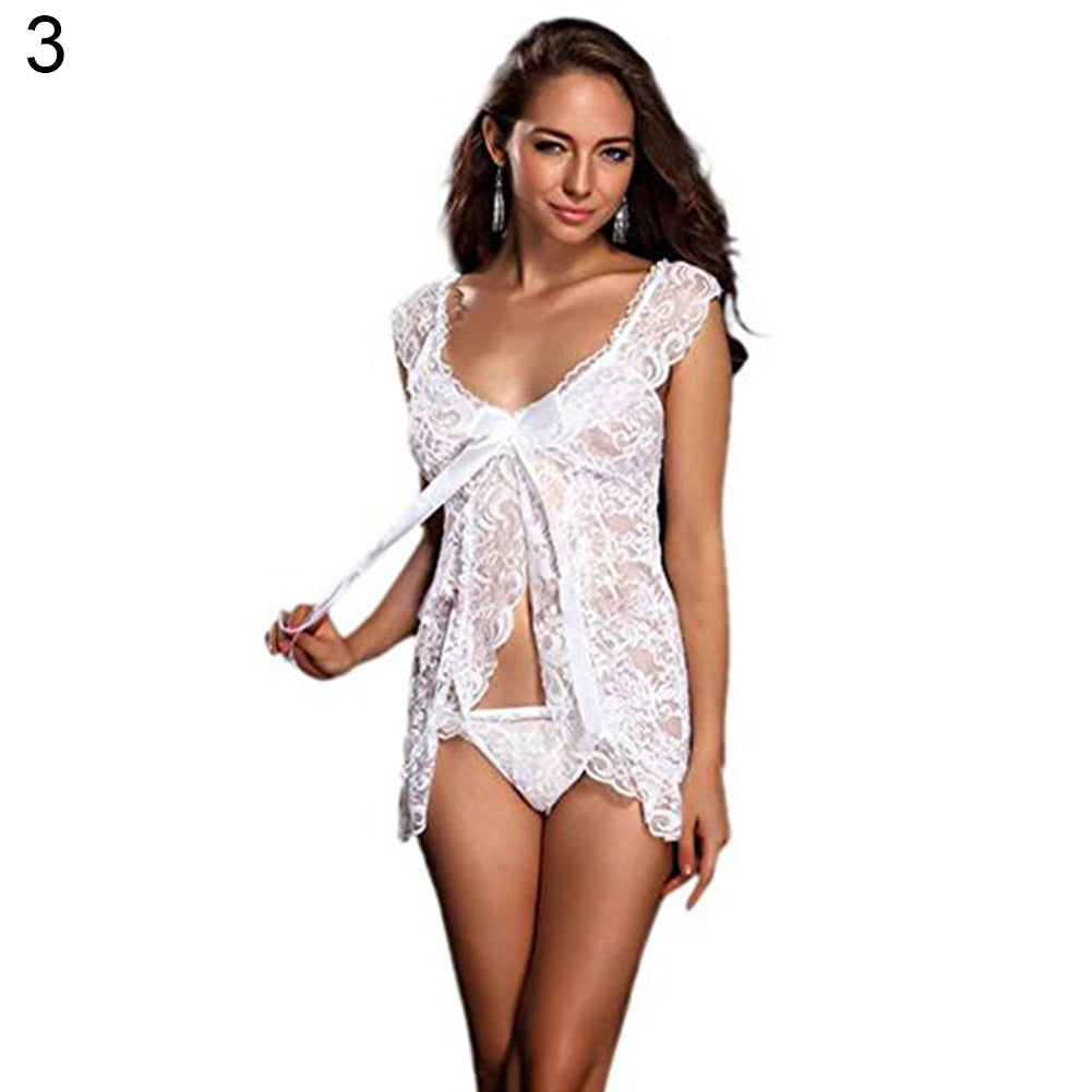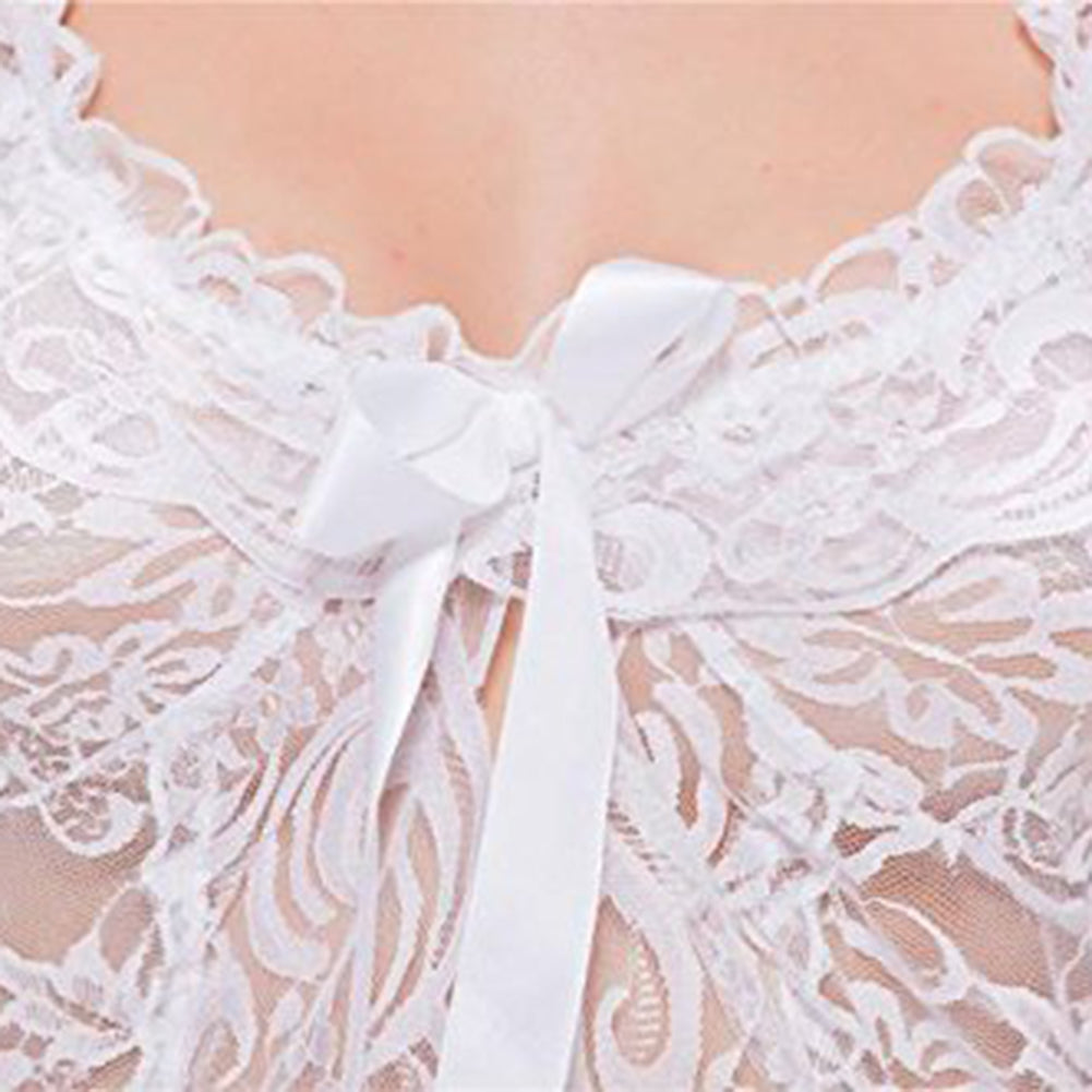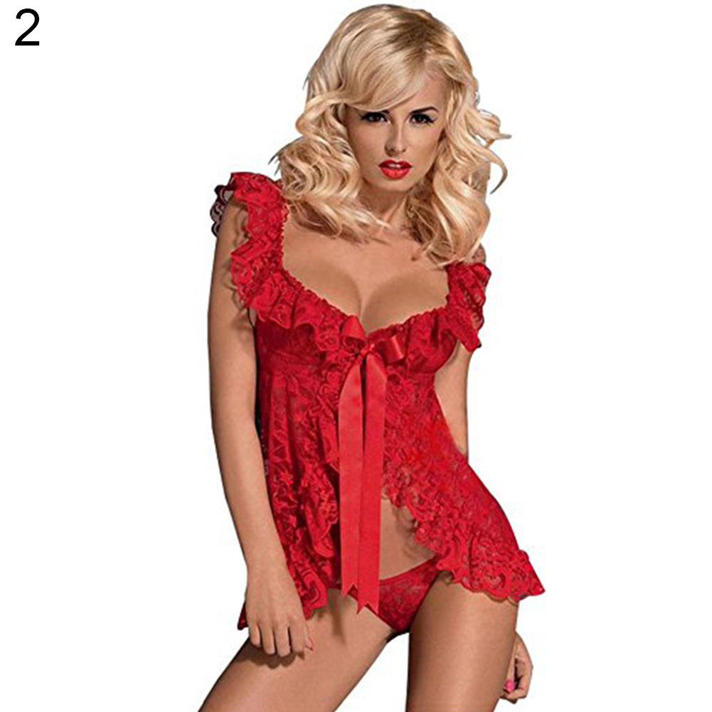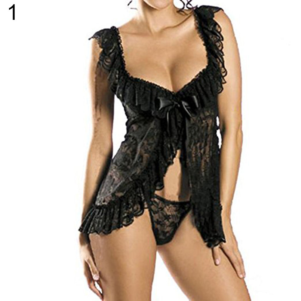 Women's Sexy Lace Ruffle Temptation Dress + Thong G-String Babydoll Sleepwear