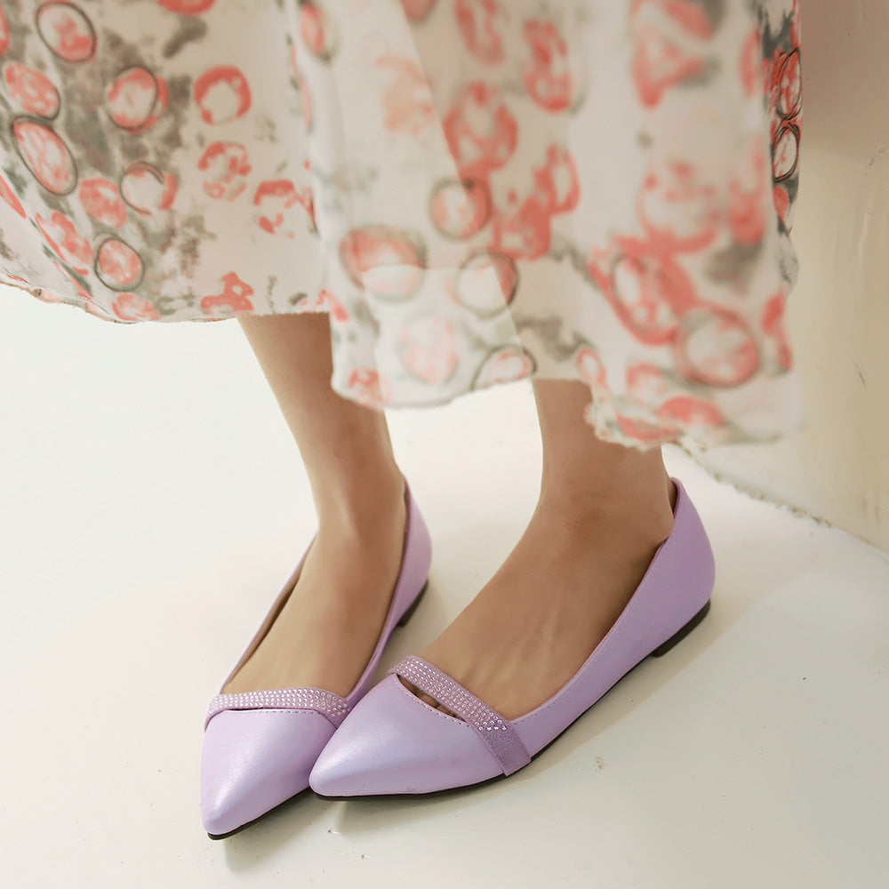 Women's Shoes Leatherette Spring / Summer Comfort Flat Heel Sparkling Glitter / Split Joint Beige / Purple / Pink