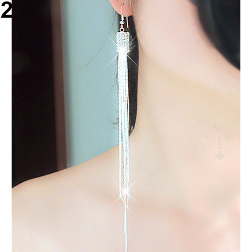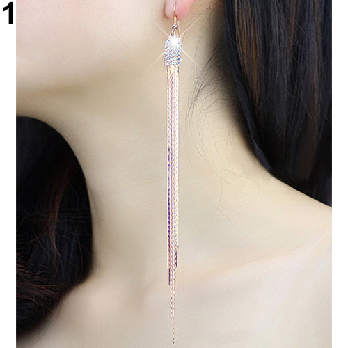 Women's Square Rhinestone Drop Long Tassels Chain Hook Dangle Party Linear Earrings