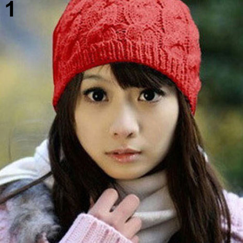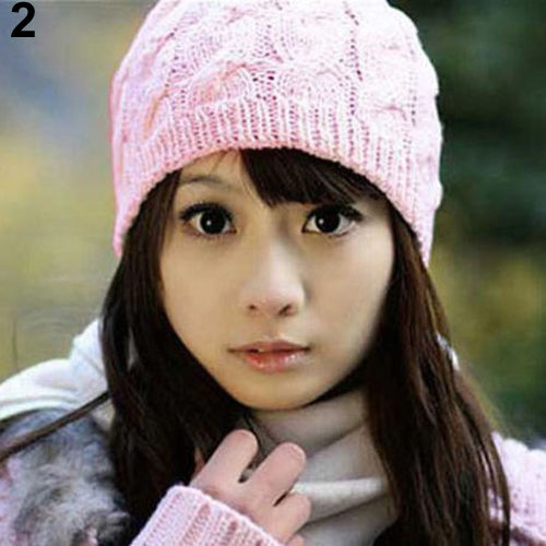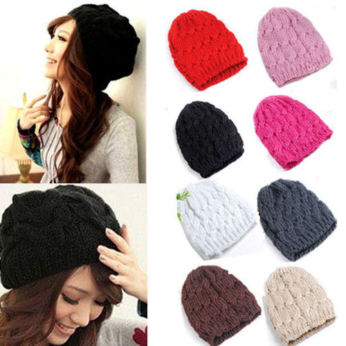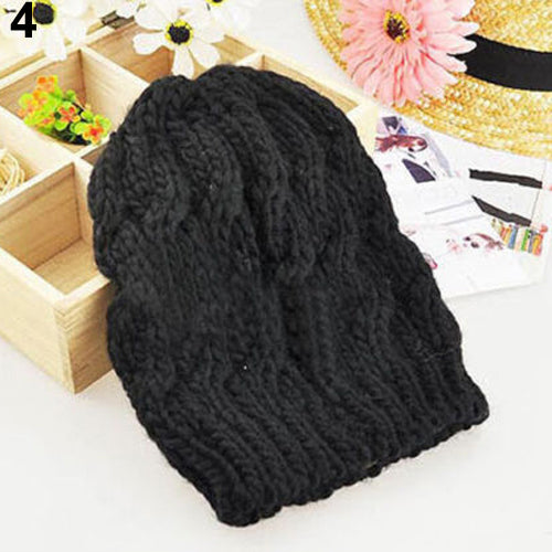 Women's Sweet Knit Crochet Ski Hat Winter Warm Braided Baggy Beret Beanie Cap