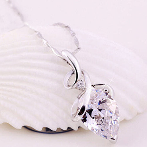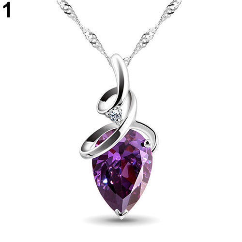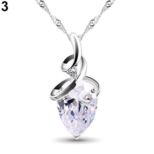 Women's Twist Waterdrop Zircon Pendent Chain Choker Charm Necklace Jewelry