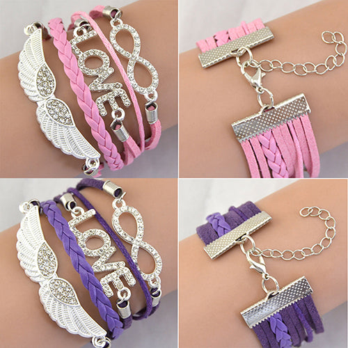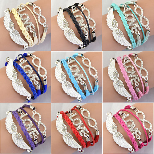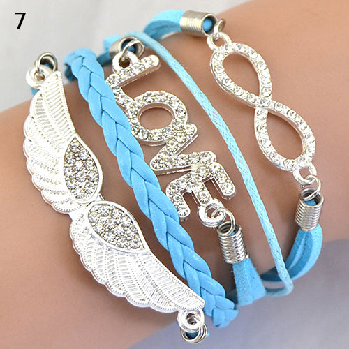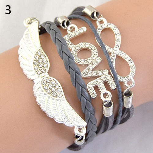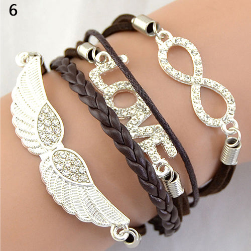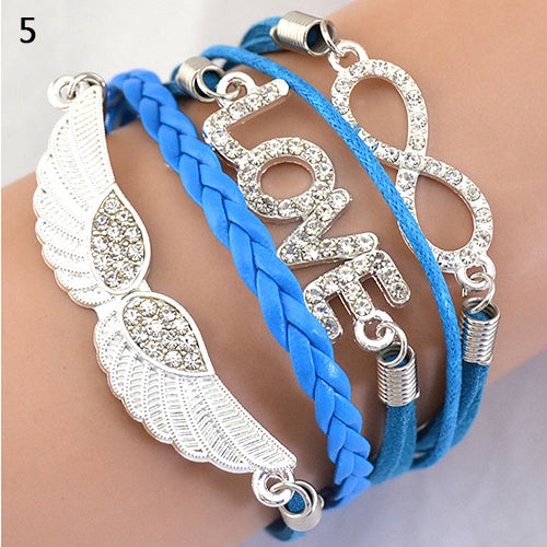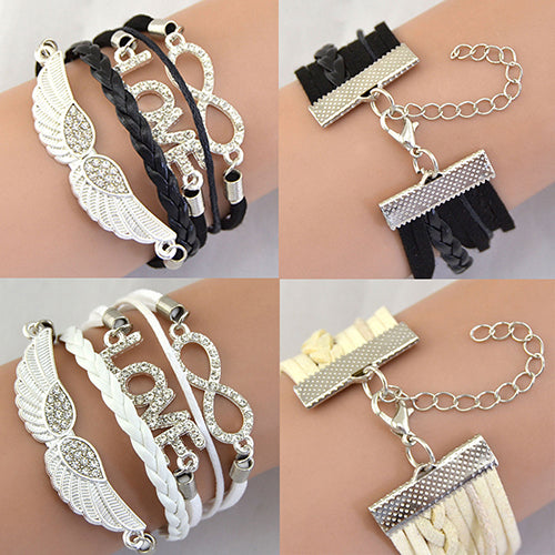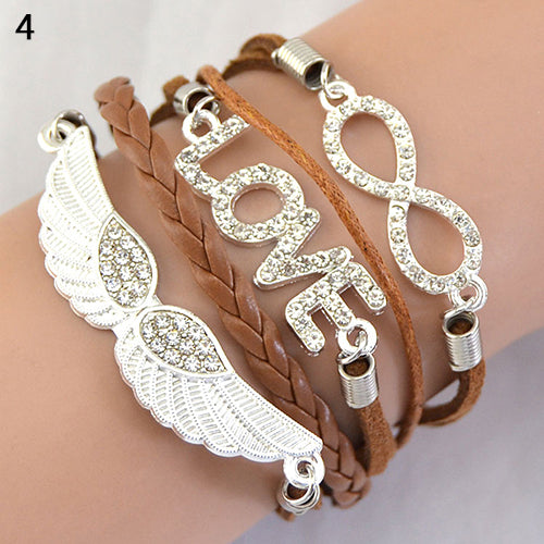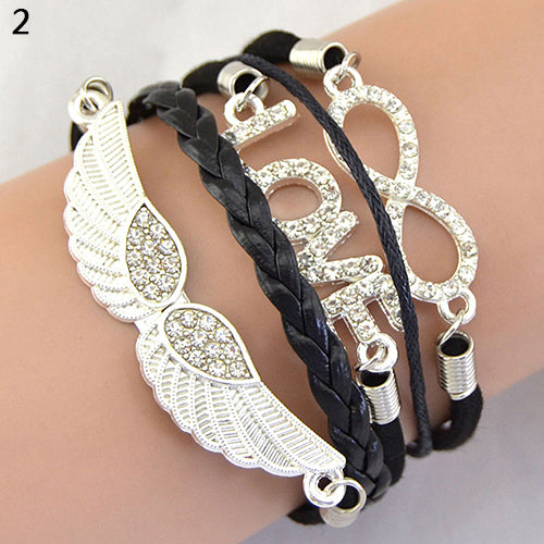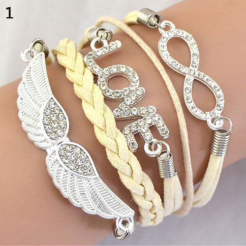 Women's Vintage Infinity Braid Bracelet Love Angel Wing Style Rhinestone Bangle