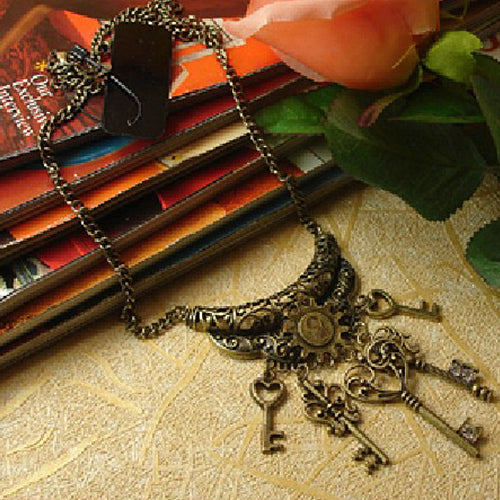 This statement necklace for women is designed love heart keys pendant, which looks very elegant and stylish.