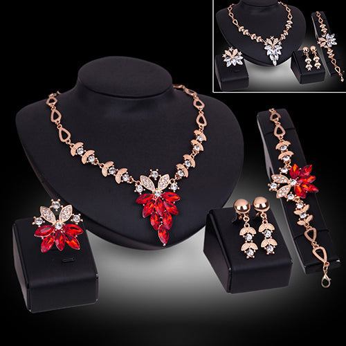 Women's Wedding Bracelet Necklace Jewelry Set Clear Crystal Statement Ring Earrings