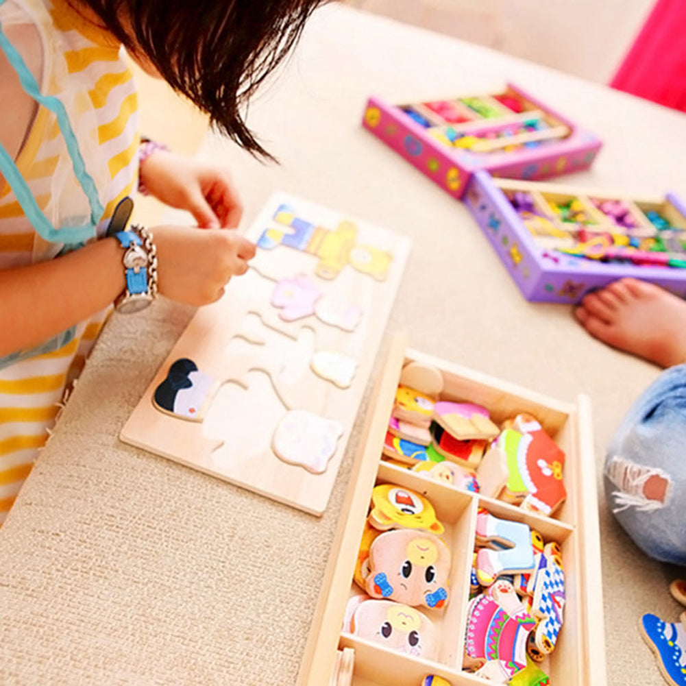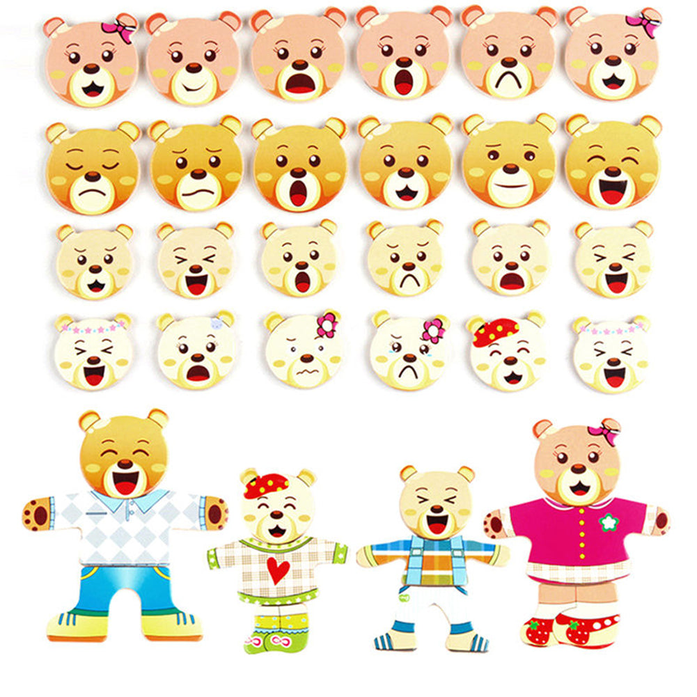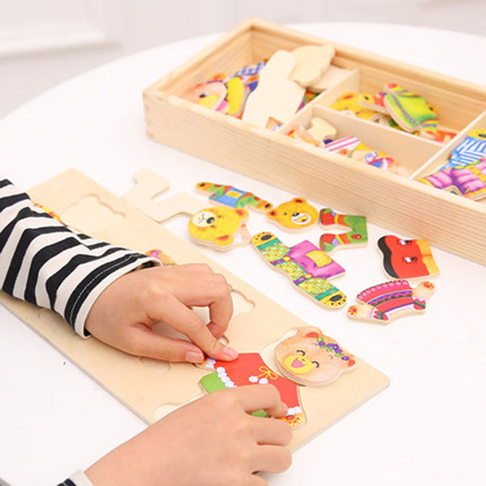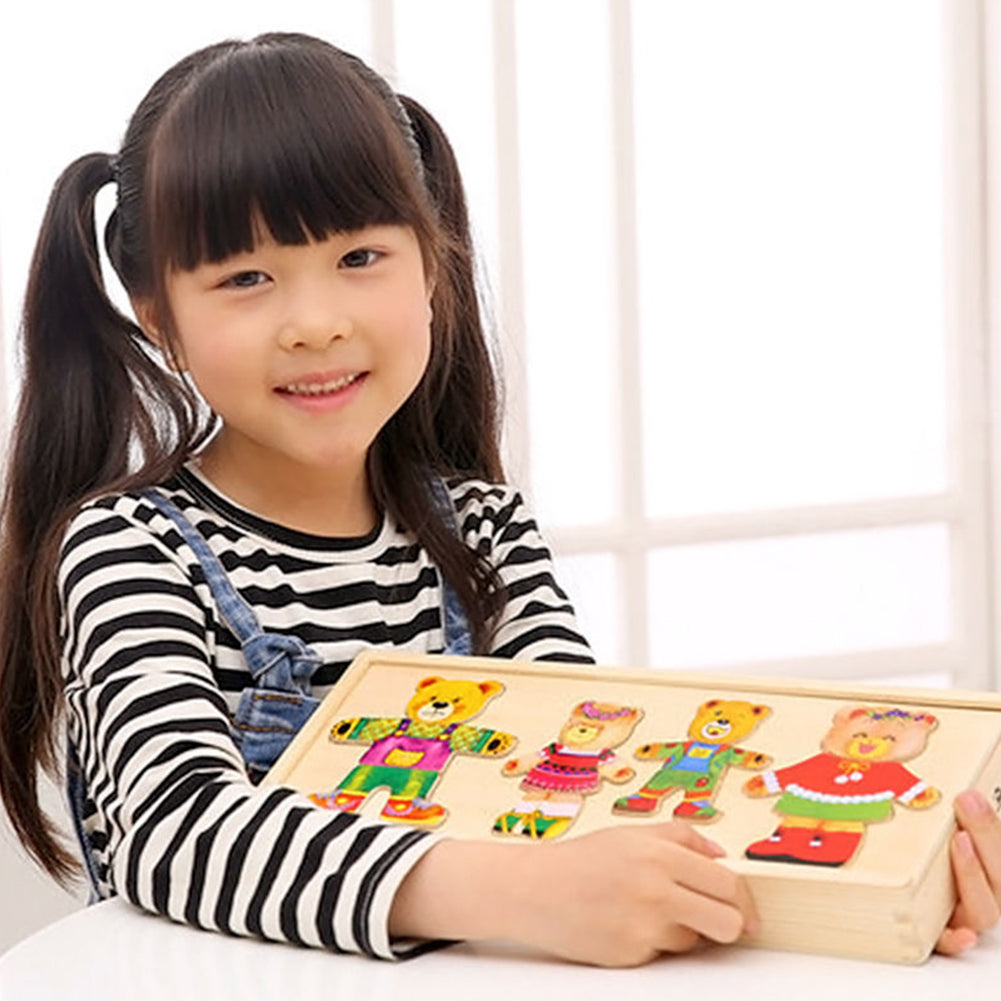 Wooden Baby Bear Changing Clothes Puzzle Set Children Kids Educational Toys Gift